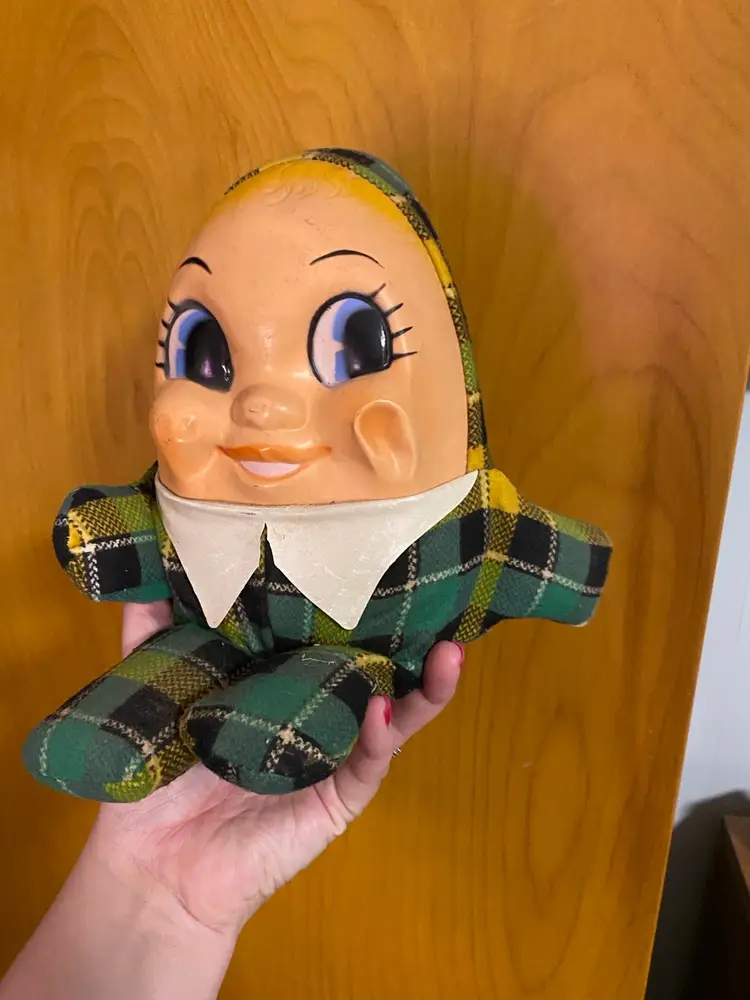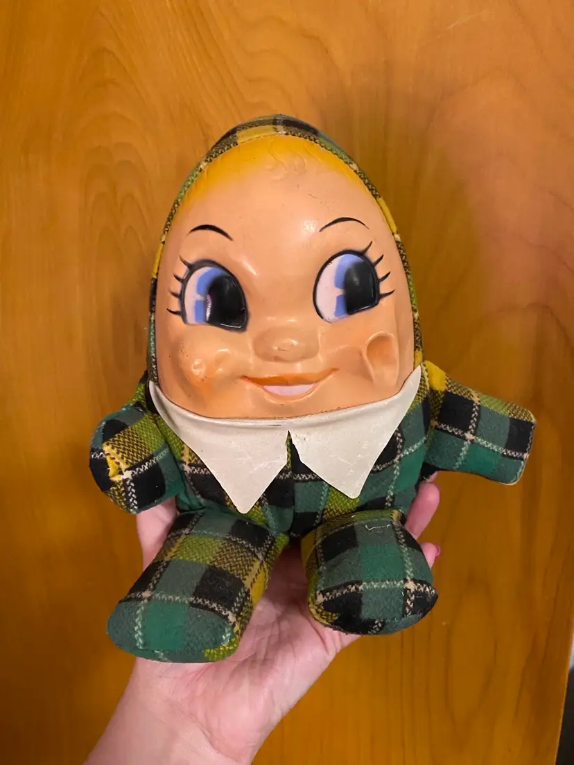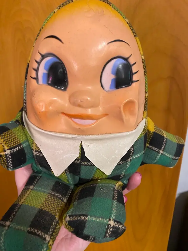 Vintage Humpty Dumpty Plush With Plastic Face Big Eye