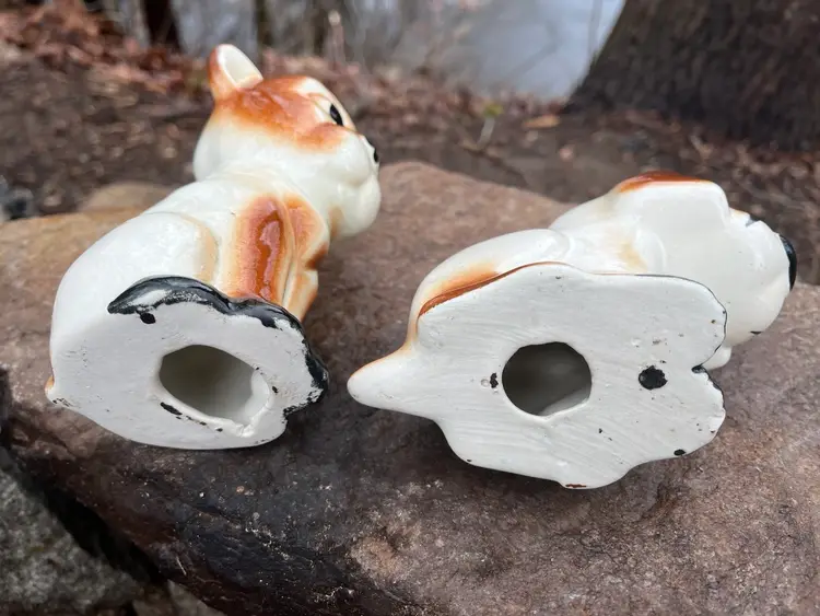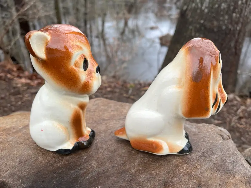 Adding a couple more dogs to your collection never hurts! You will receive both ceramic canines. There is some crazing especially on the hush puppy’s face. No chips. They are about 5” tall. #collectible #ceramic #animals
