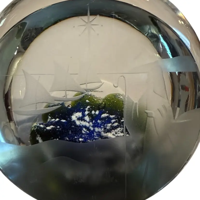 Joseph with shepherd's crook, the Star of Bethlehem and three sailing ships etched front facet