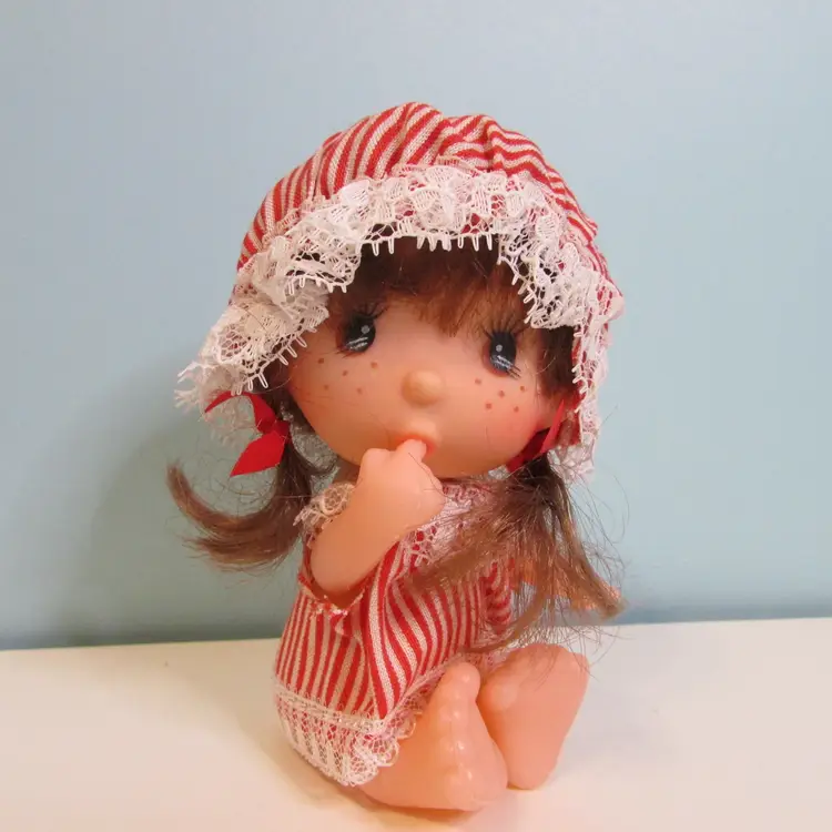 This adorable doll was sold at Howard Johnson, she was made in Hong Kong. She no longer has a scent, but still a cute piece to display. You can mover her head, arms and legs. She is about 4" tall. The girl on the end is a similar doll out of the package. This is shipped from a smoke free home. Thanks for looking!