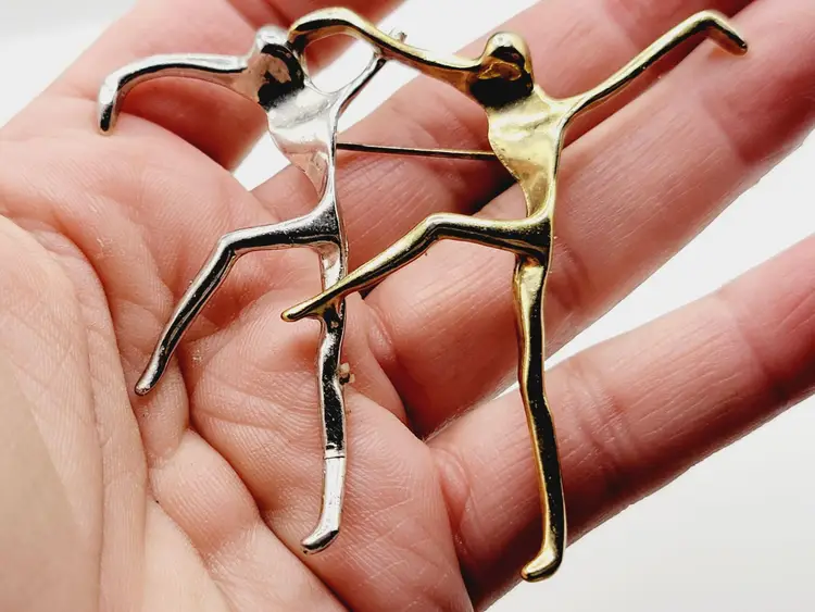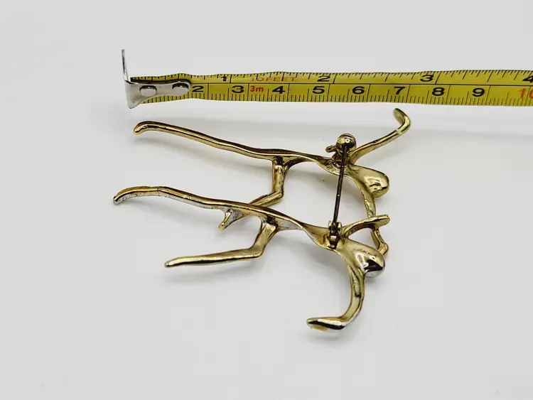 Amazing abstract brooch of 2 people dancing together set in 2 tone metal. Size: 2.75 in Condition: Very good vintage Era: Circa 1980's Signed: Unmarked