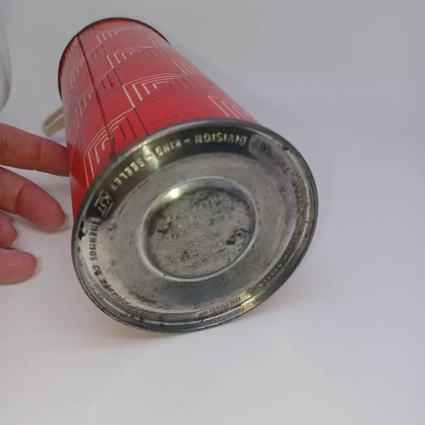 VINTAGE MID-CENTURY THERMOS BRAND "ICY HOT" METAL QUART THERMOS ORIGINAL STOPPER & LID
