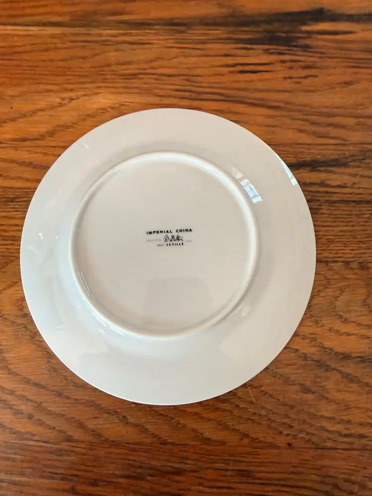 This elegant vintage plate is from Imperial China’s Seville pattern (5303), designed by Ed Dutton and made in Japan during the mid-century era (1950s–1960s).