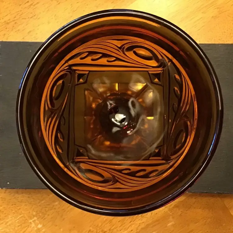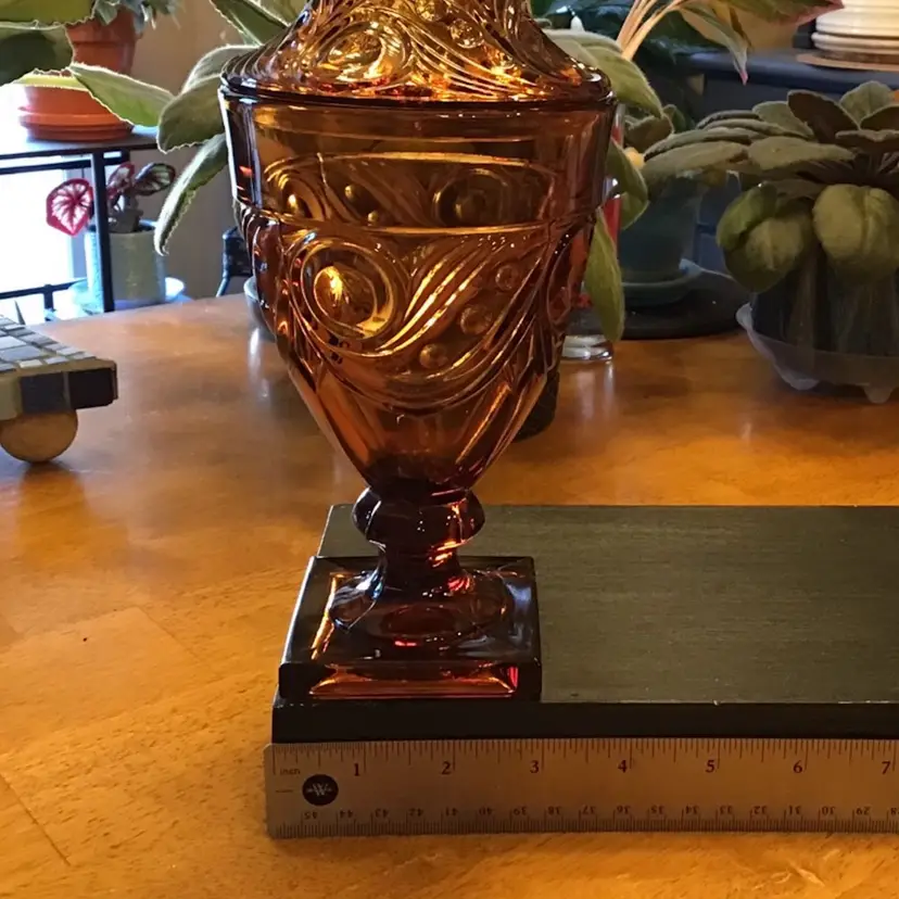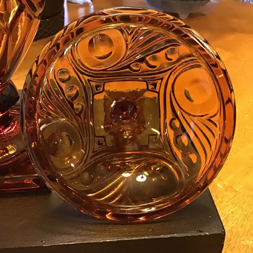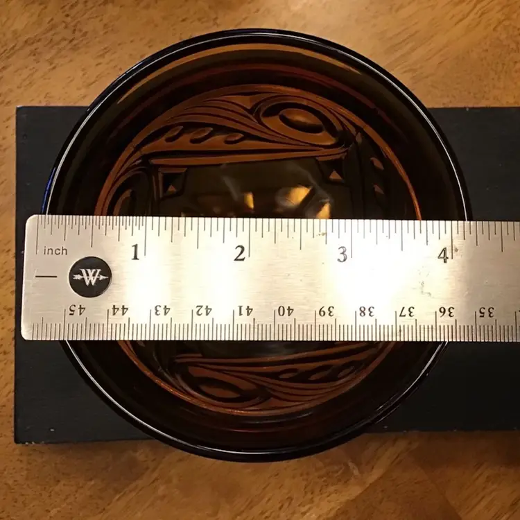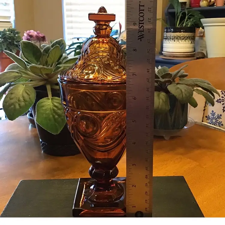 Gorgeous amber candy dish is in excellent condition. No chips, cracks, or repairs. Size is in the pictures. See all pictures as they are an important part of the description.