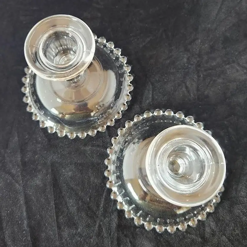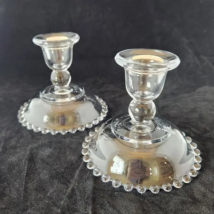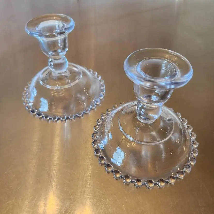 Beautiful set of candlewick candle holders. The opening for the candle is 1" in diameter. In great, used condition.