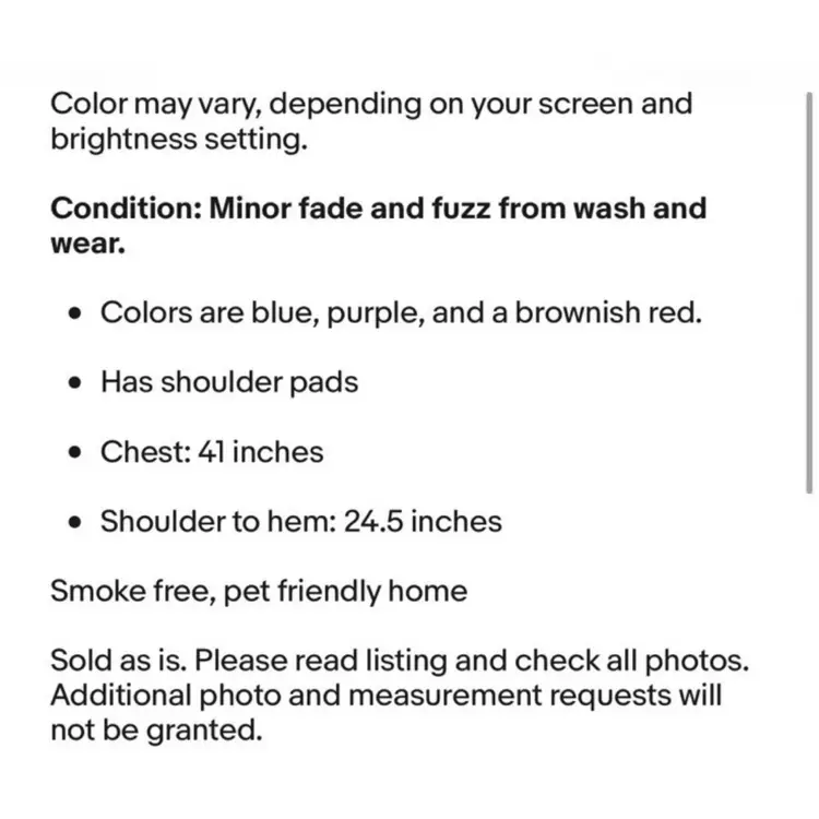 Sold as is. Please read listing and check all photos. Additional photo and measurement requests will not be granted.