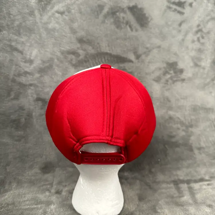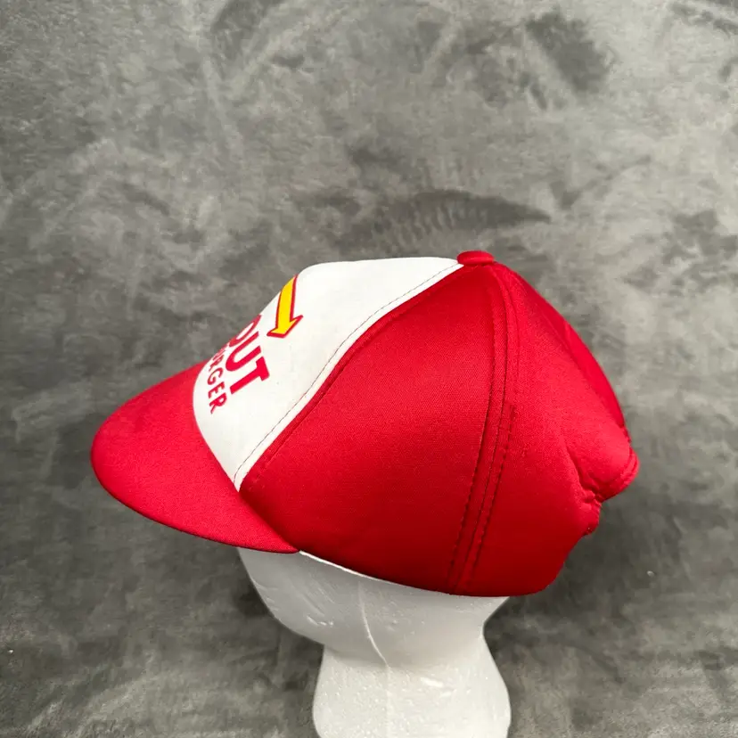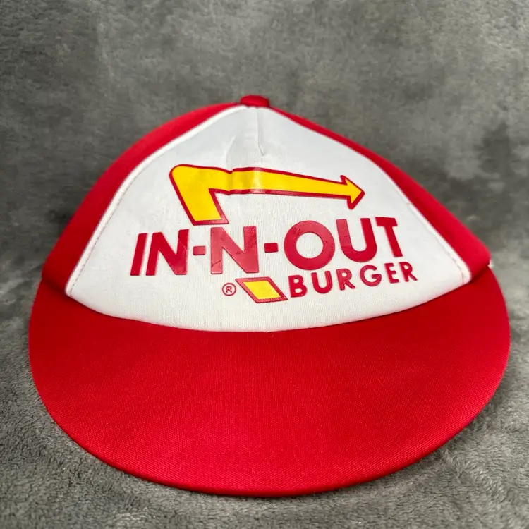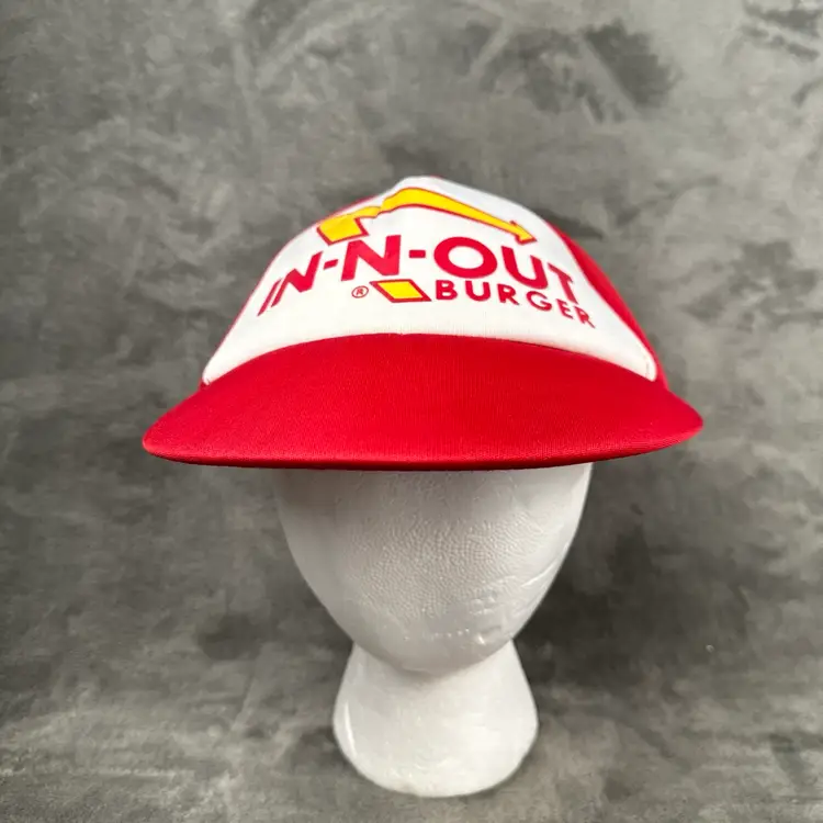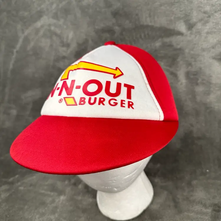 • Brand: In-N-Out Burger • Style: Classic red and white snapback hat with the iconic In-N-Out Burger logo featuring the yellow arrow design. • Material: Lightweight fabric with breathable construction for comfort. • Size: Adjustable snapback closure fits most sizes. • Condition: Excellent pre-owned condition with minimal signs of wear (see photos for details). The interior is clean, and the stitching is intact.