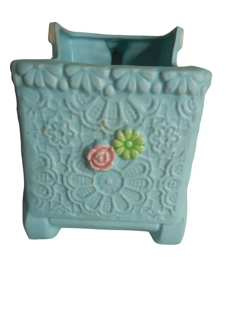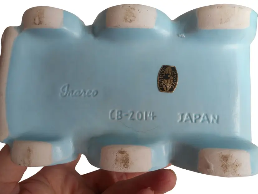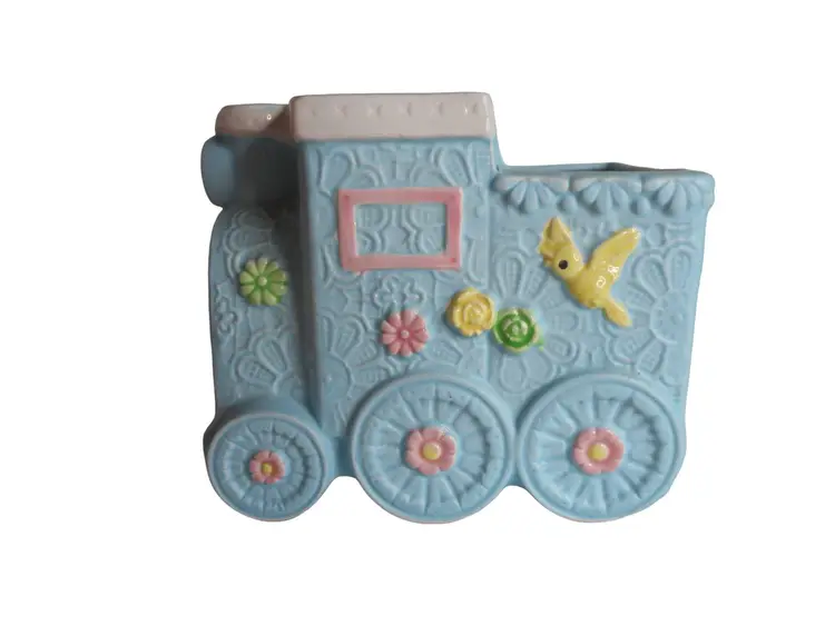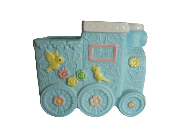 Vintage Inarco Ceramic Planter Blue Train Japan Nursery Decor - from an Estate