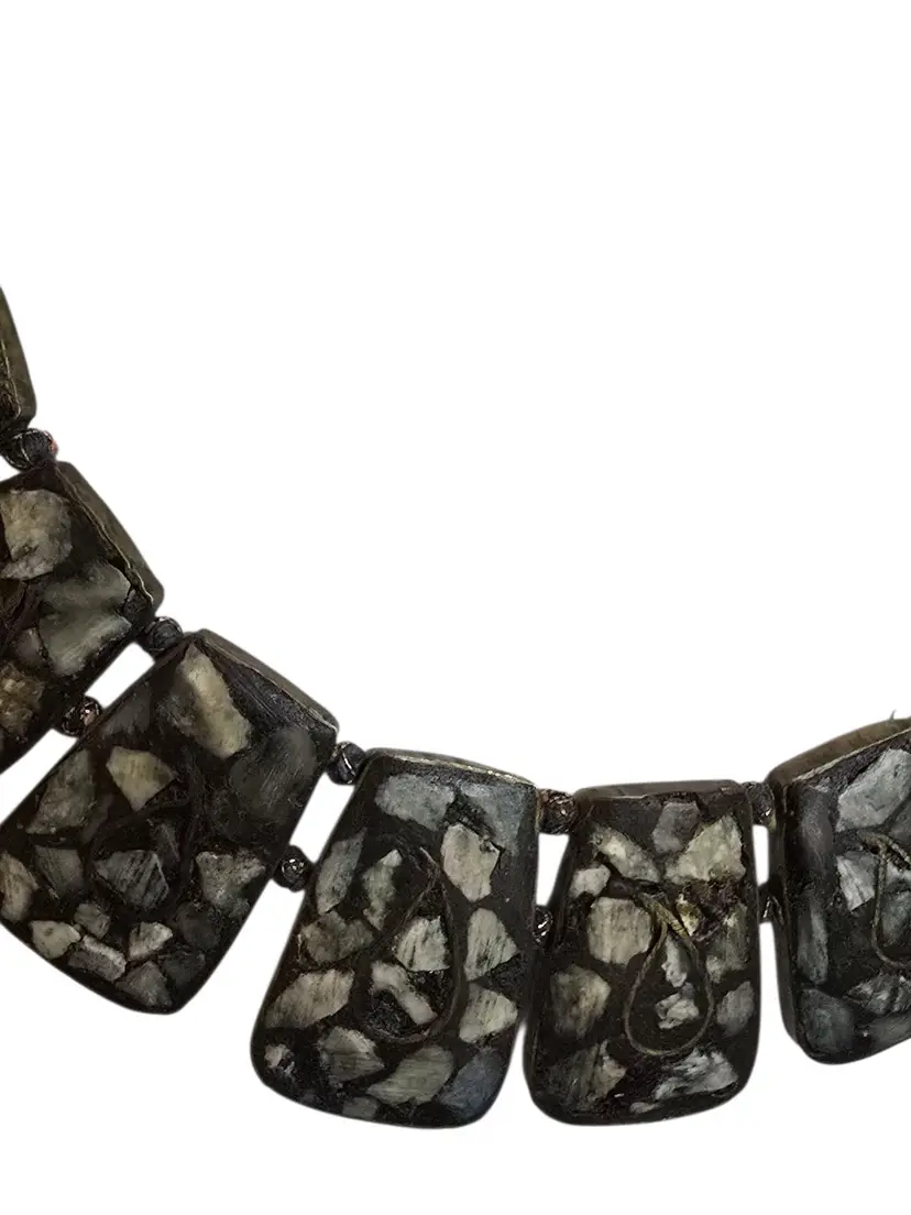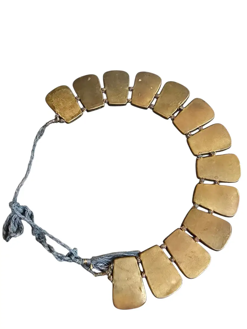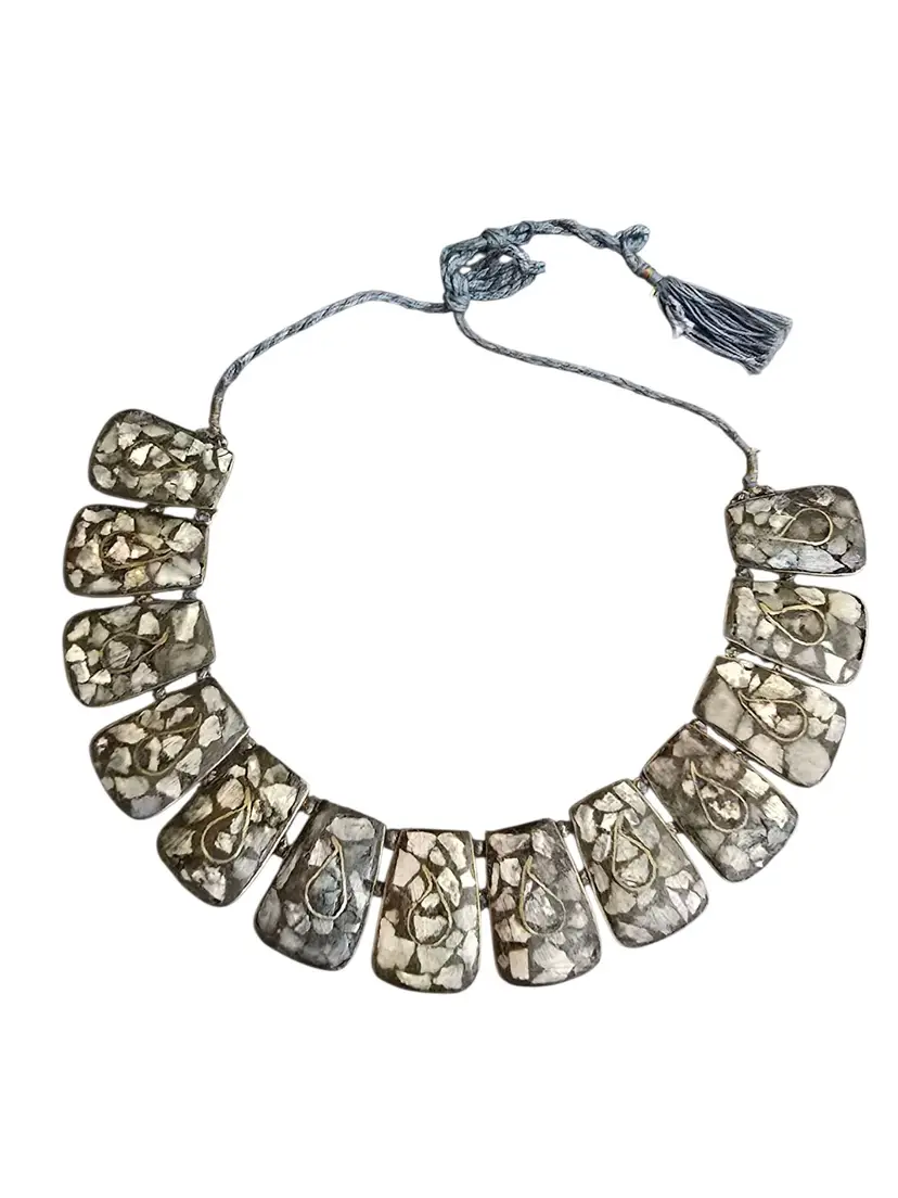 Vintage India? Mosaic Style On Brass And Cord Necklace (A9463)