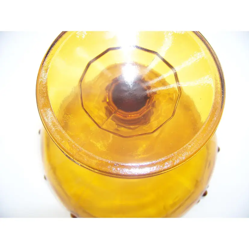 Vintage Indiana amber glass compote in garland/teardrop pattern. The dish is 7.5" tall 8" diameter. There is a scrape mark inside of the bowl, probably done at factory. Hard to see, has to have light just so to see it so I was unable to photo it. No chips or cracks.