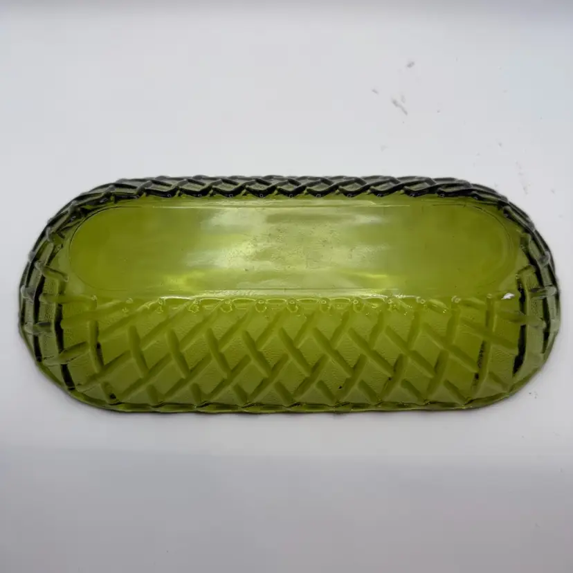 This beautiful green dish can compliment any table or decor. Goes great with fall colors like bee and amberina!