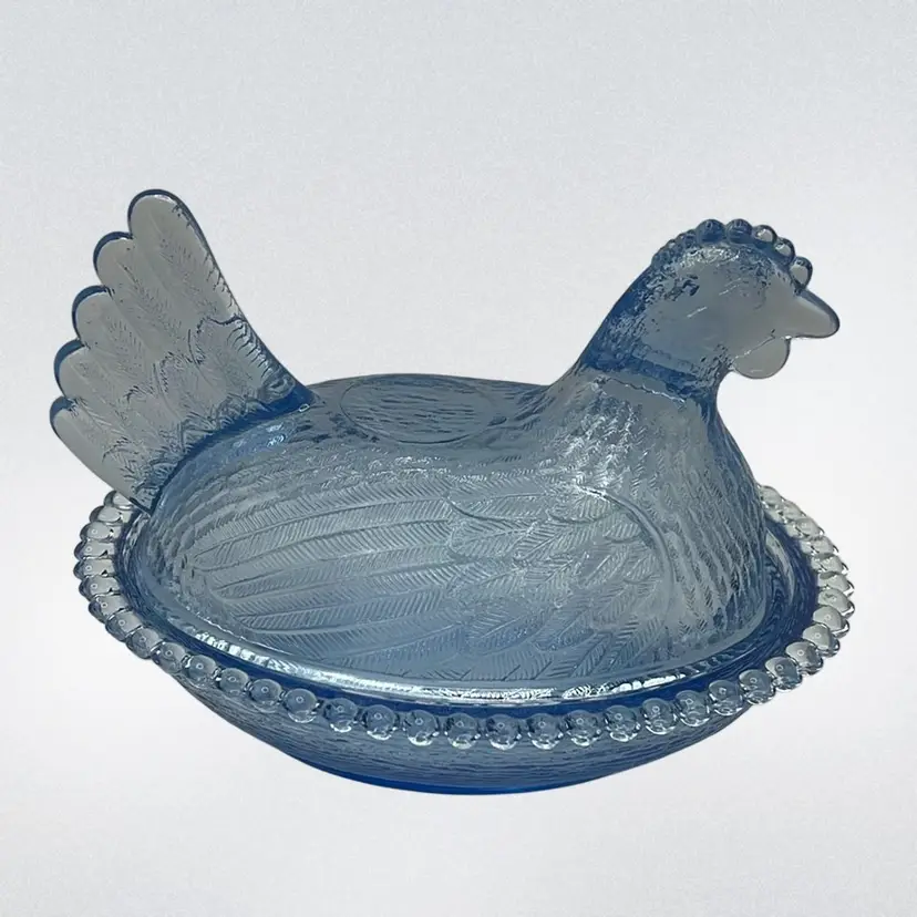 Featuring a chicken on a beaded rim nest and in excellent condition!