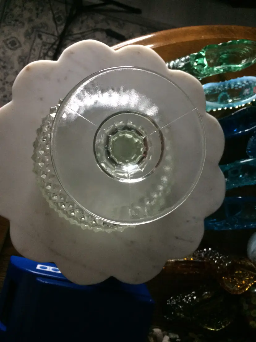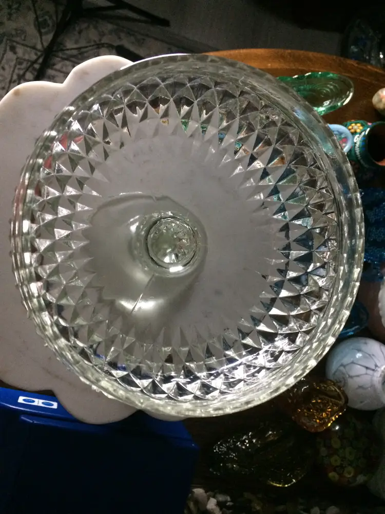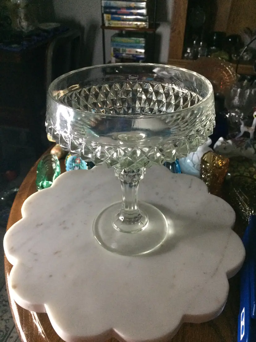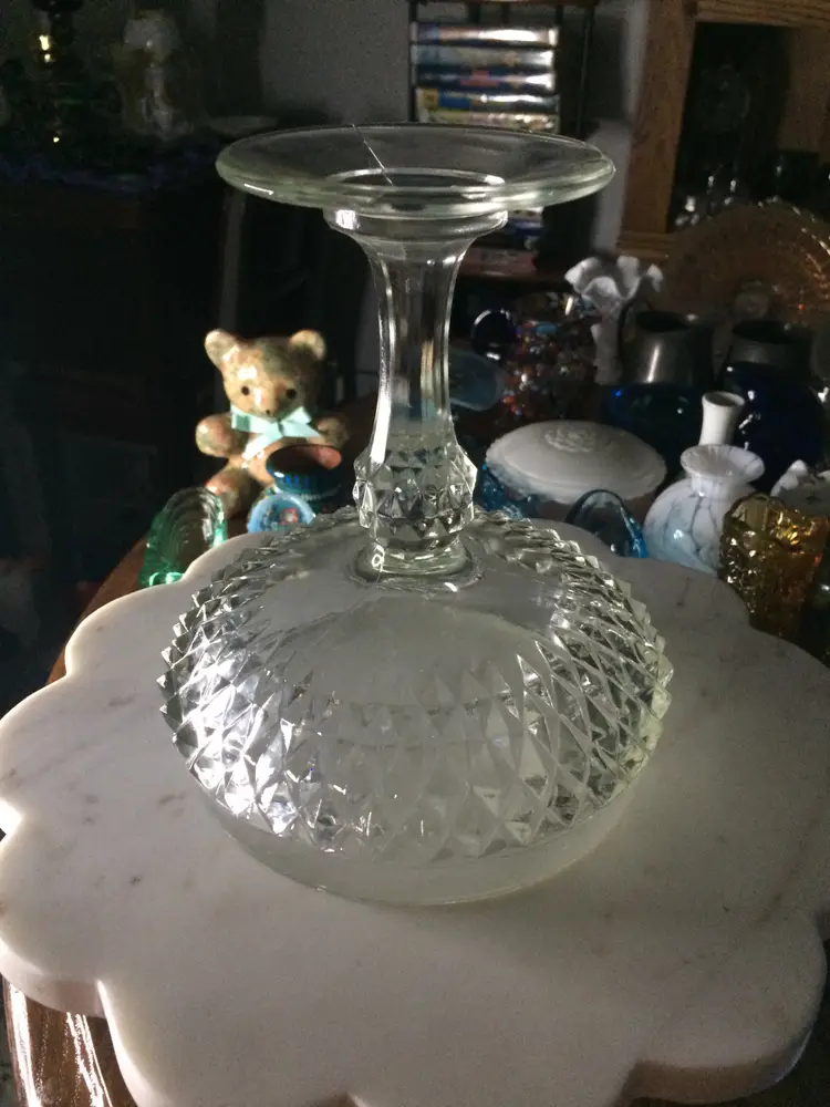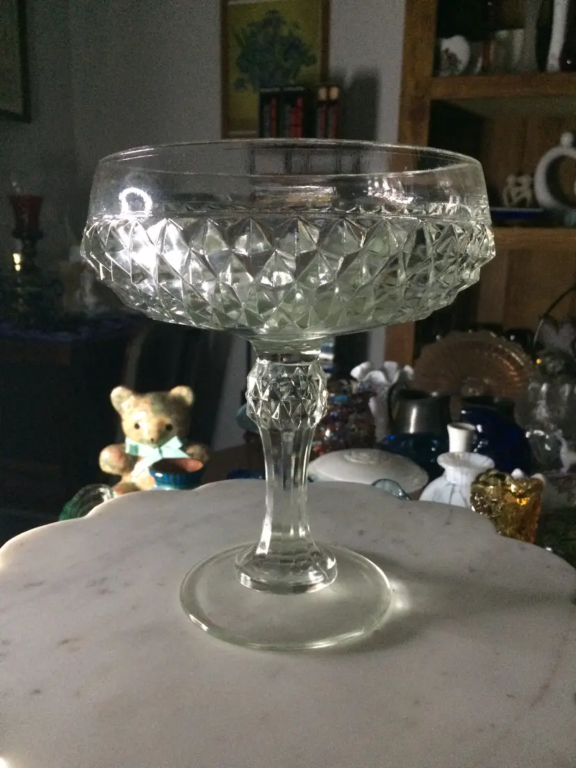 Vintage Indiana Glass Diamond Point Pedestal Bowl 6" wide x 7 1/4" tall. NEW to District? Enter code Michel42 into your wallet prior to your first purchase and save $5 off of $10 or more! Happy Hunting! Thank you for checking out my items! Give me a Follow and I'll Follow you back!