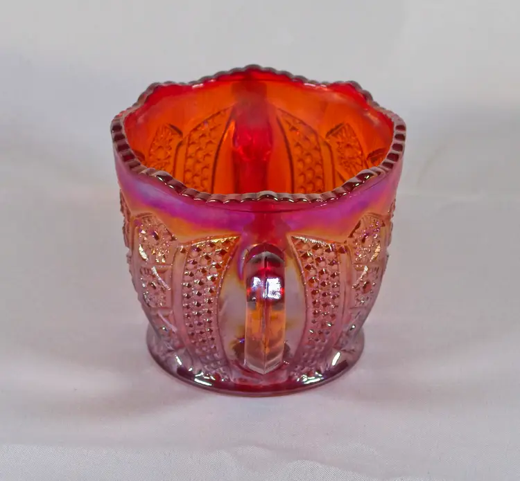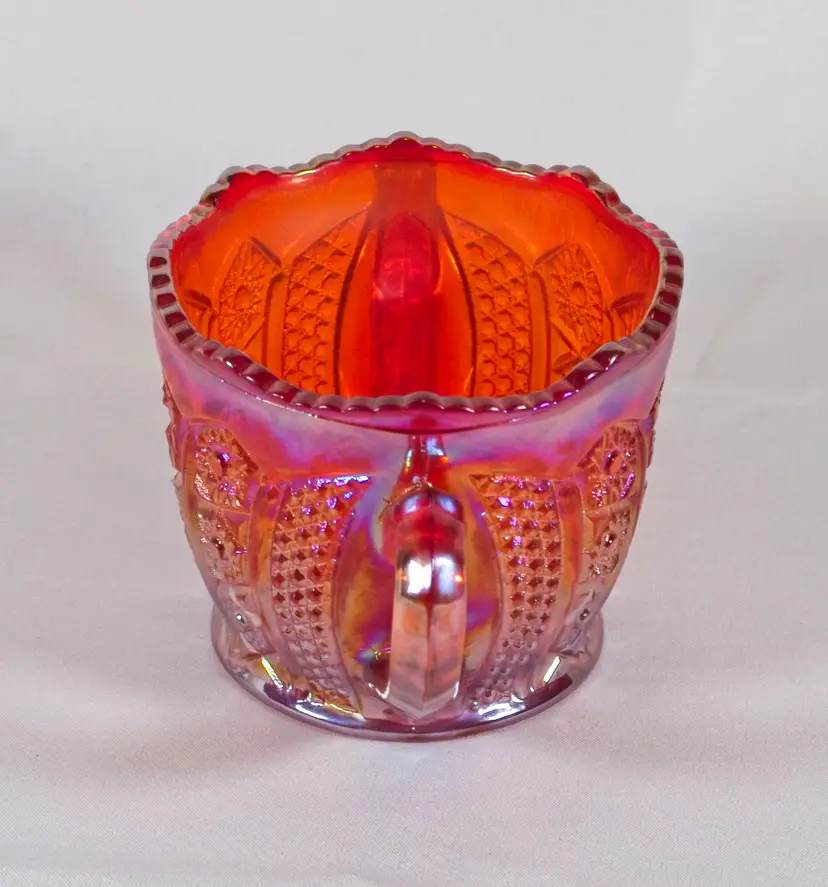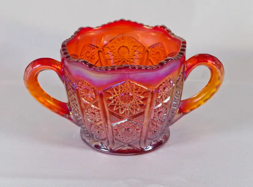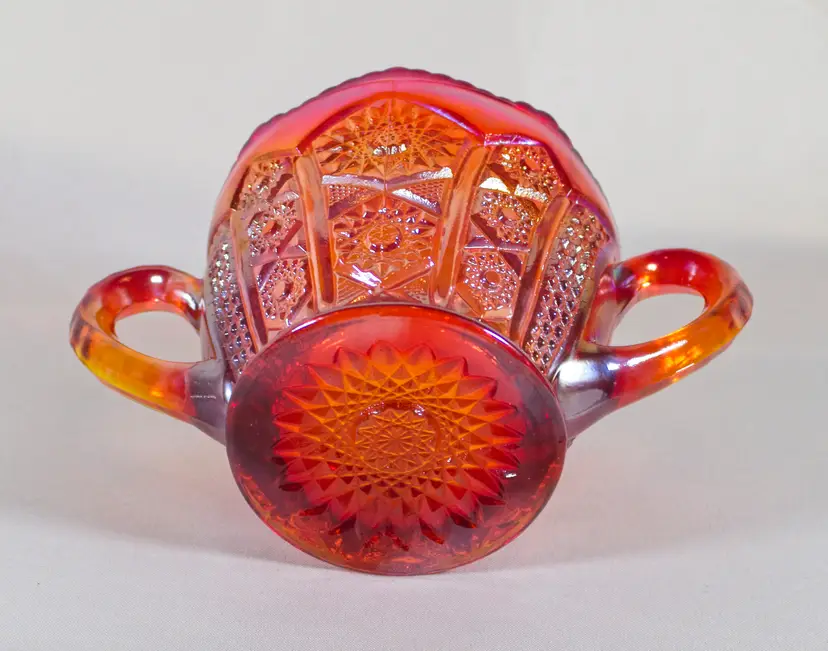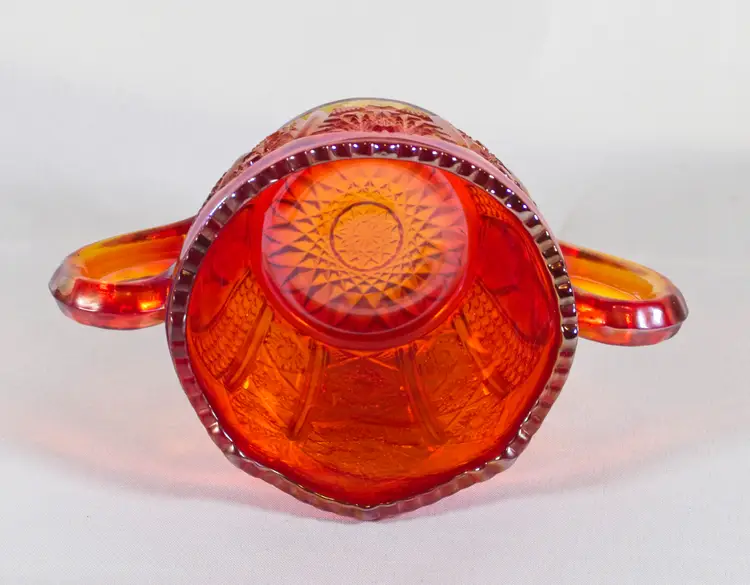 Vintage Indiana Glass Heirloom Red Sunset Sugar Bowl. In good condition. 7.5" wide x 4.5" deep x 4" tall.