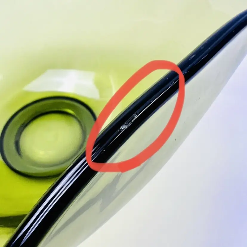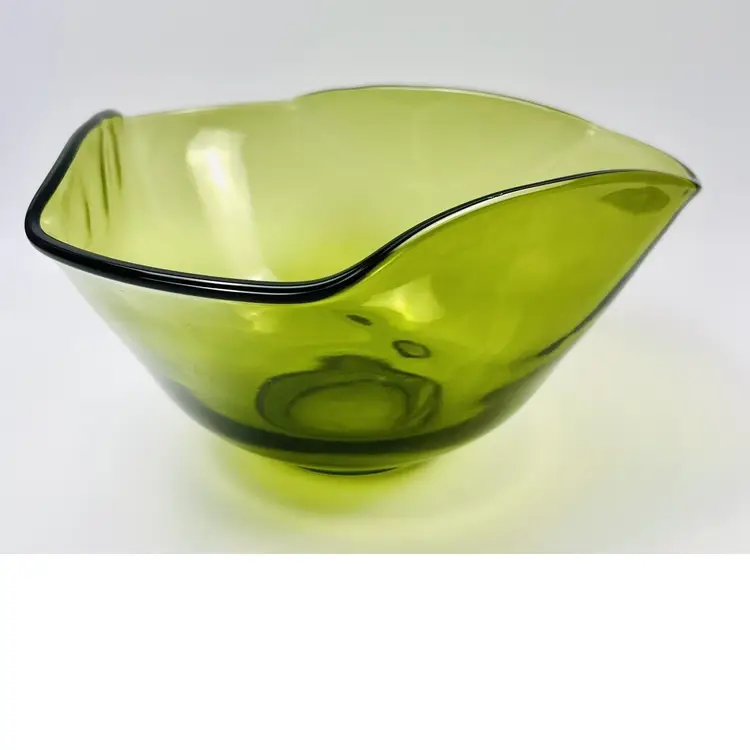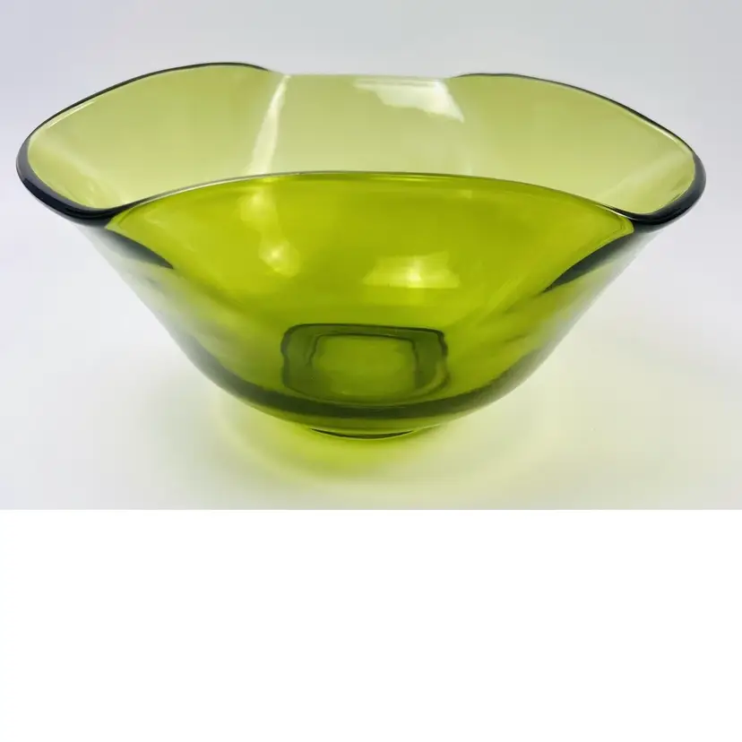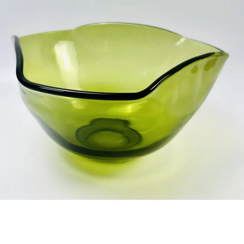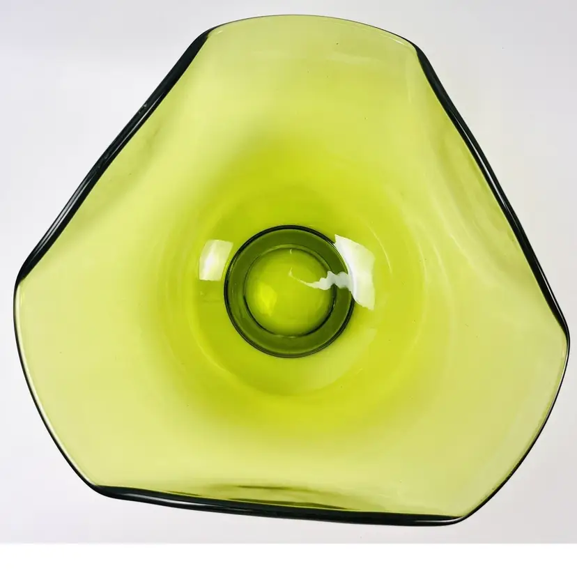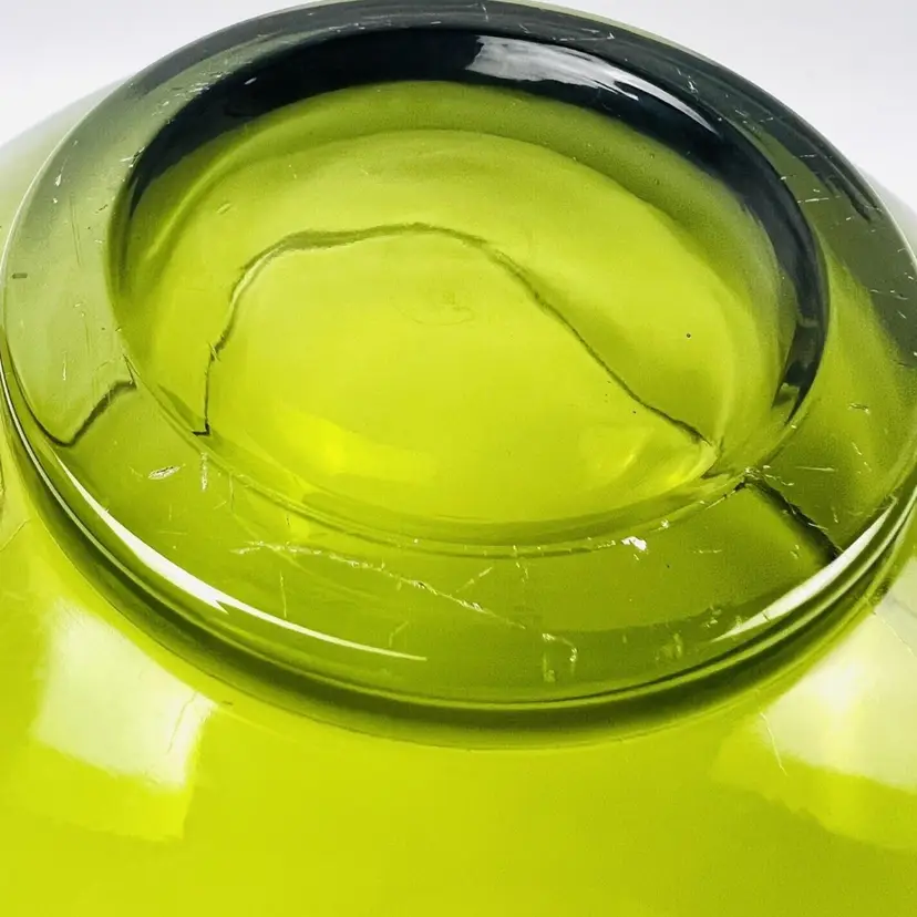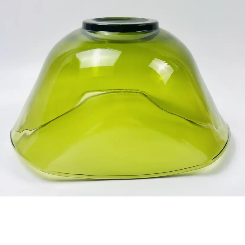 This item is in very good vintage condition. No major flaws. Some minor scratching on the bottom due to use and a very small chip on the edge (circled in images). Some small bubbles from the manufacturing process. See all images for details. Measures 5 1/4" tall by 10" wide with a 3 1/4" base Weighs 3lbs 3oz