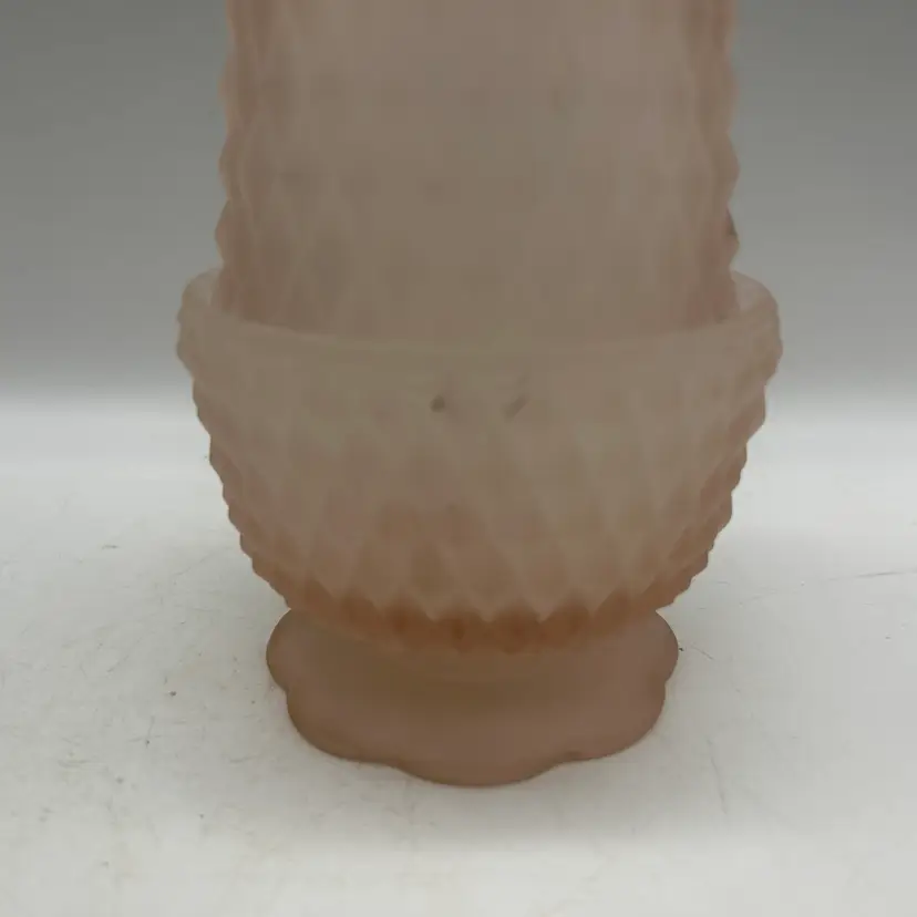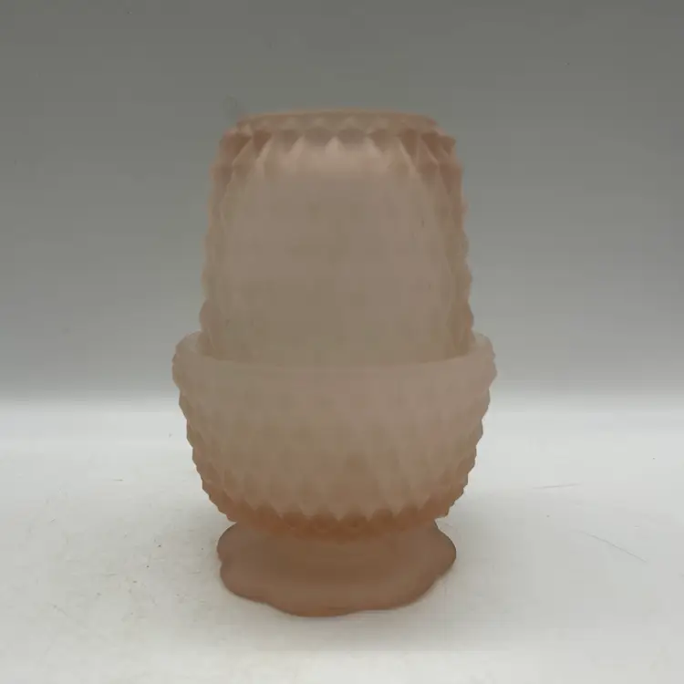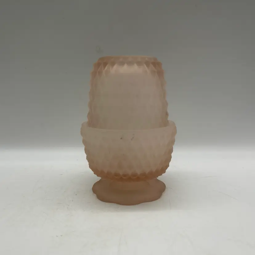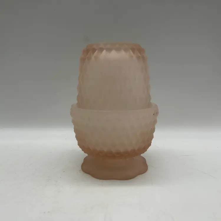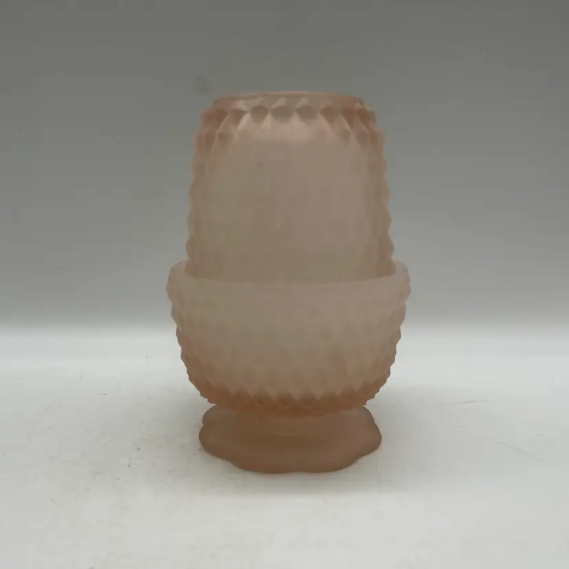 Illuminate your space with this stunning Vintage Indiana Glass Satin Pink Frosted Diamond Point Fairy Lamp Candleholder.