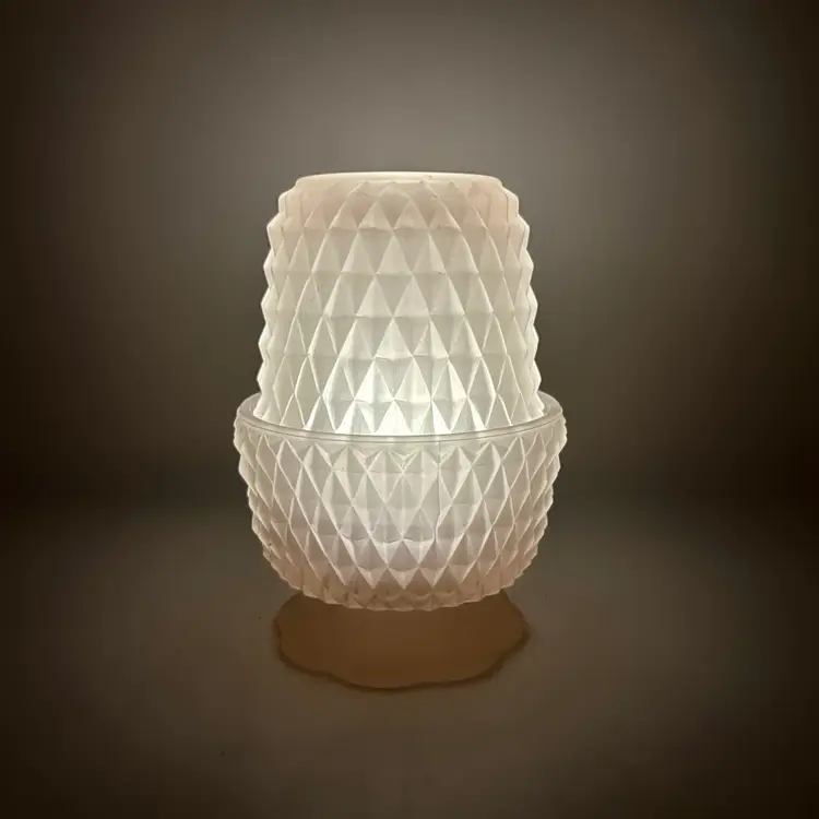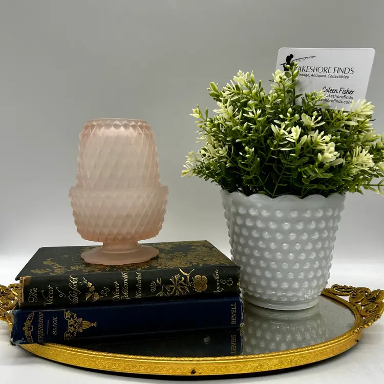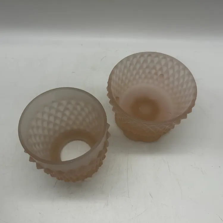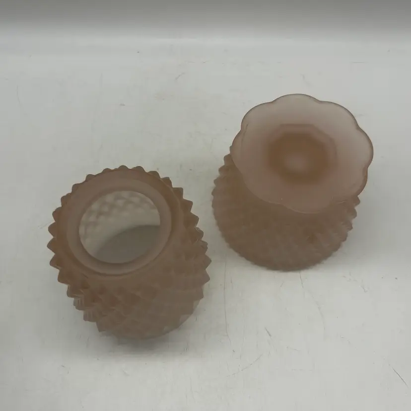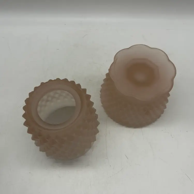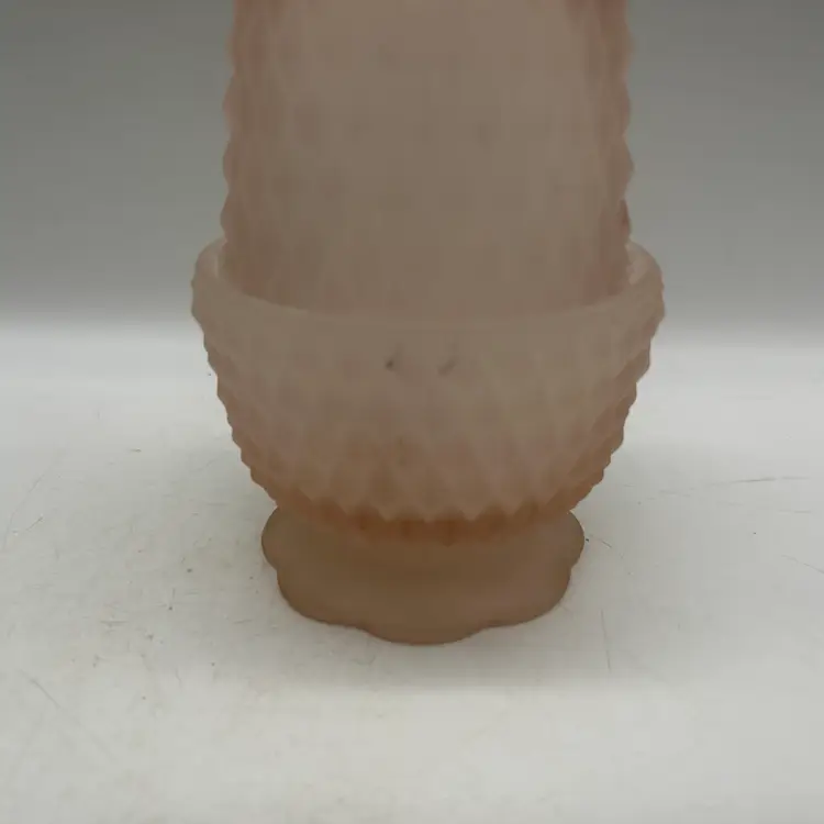 Illuminate your space with this stunning Vintage Indiana Glass Satin Pink Frosted Diamond Point Fairy Lamp Candleholder.