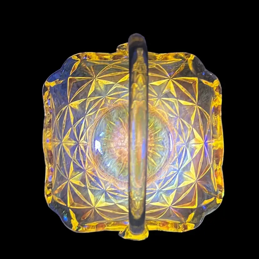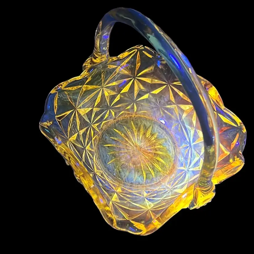 Indiana Monticello square basket with applied handle. Glows orange π.