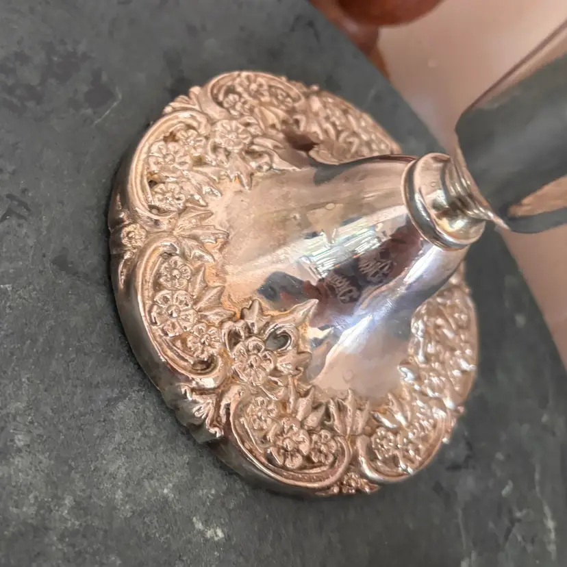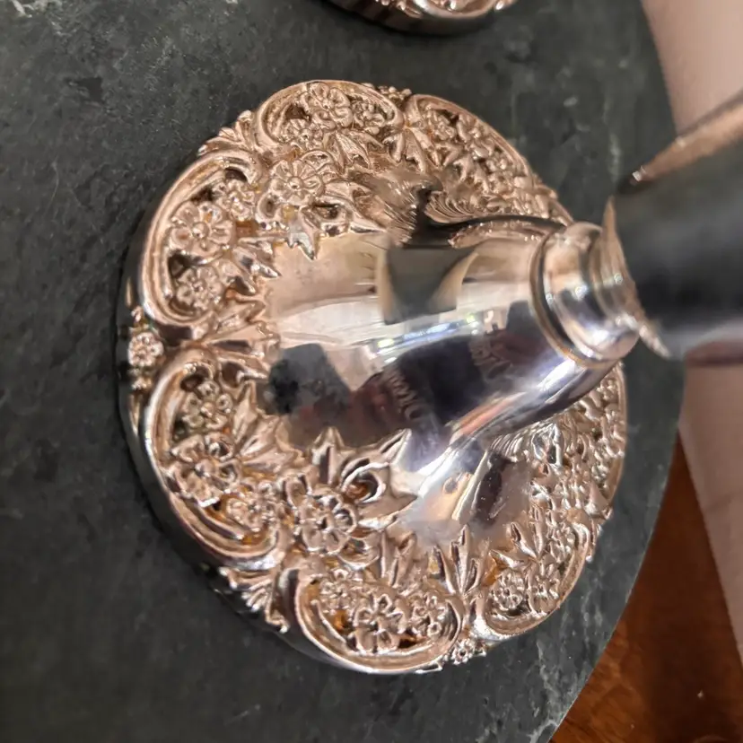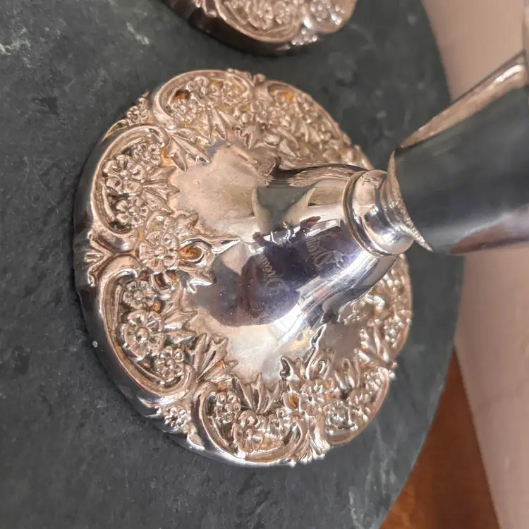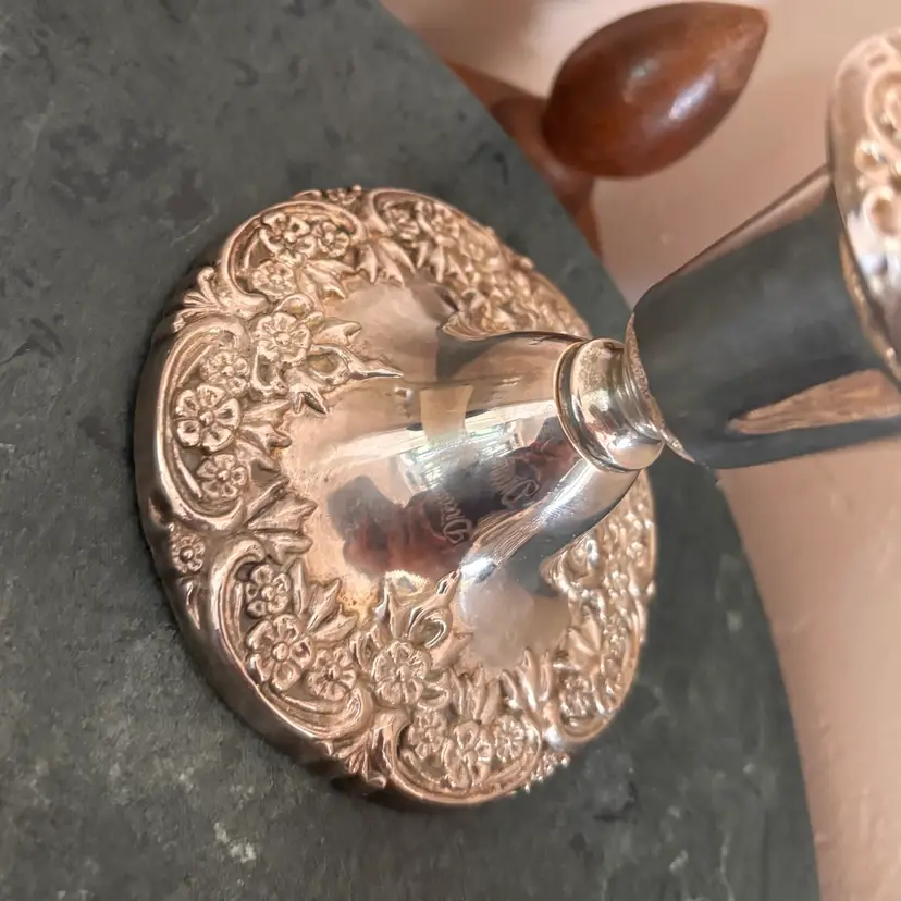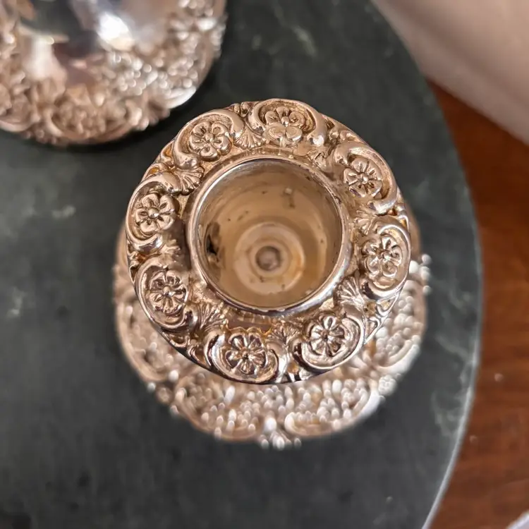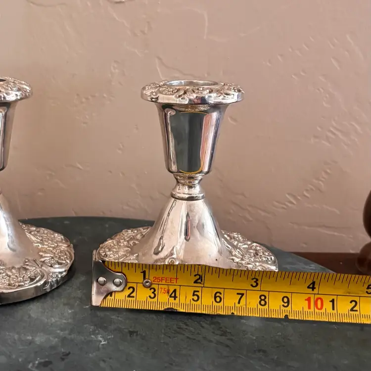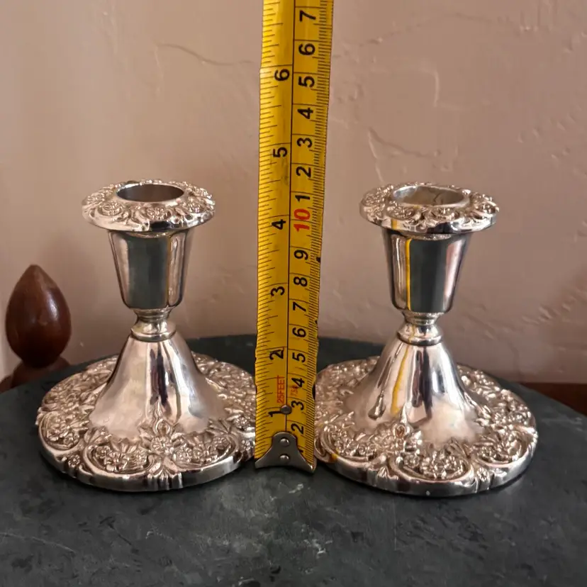 Stunning silver candlesticks 4 1/2”tall x 3 1/2”wide Vintage wear and patina as shown