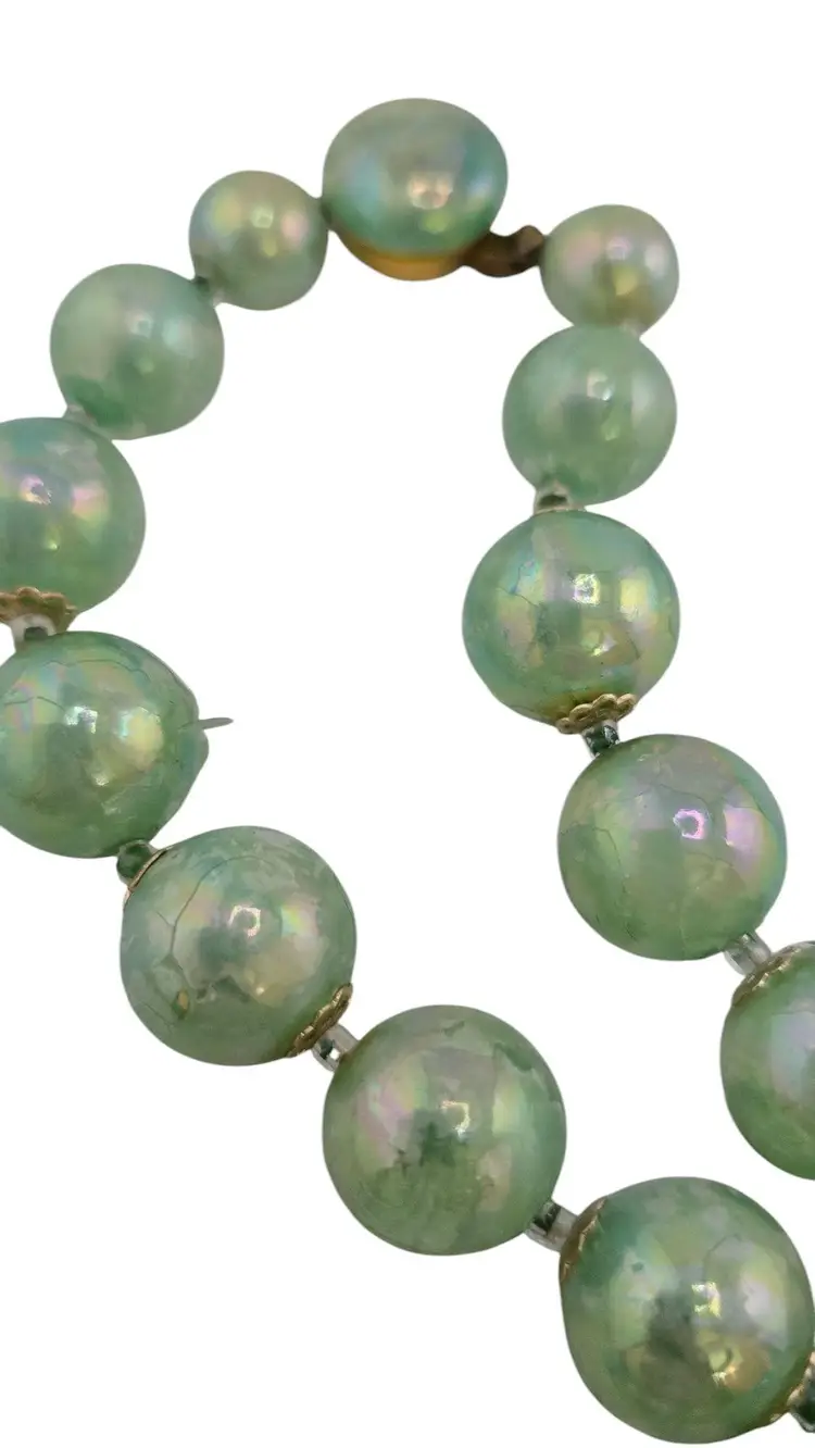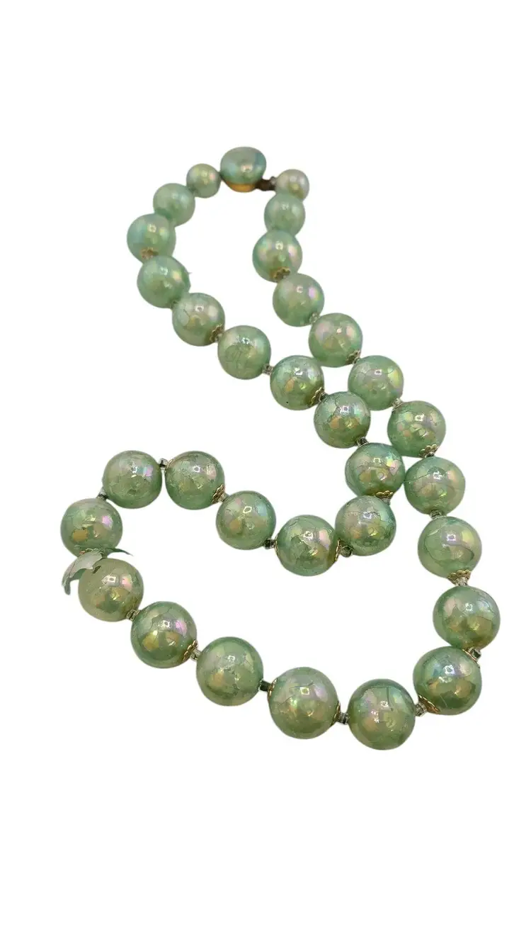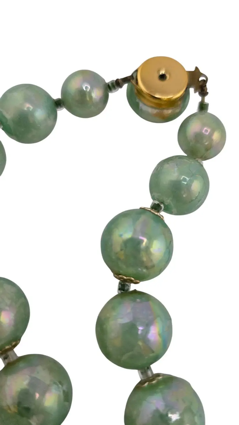 Vintage Iridescent Acrylic Beaded Necklace with Glass Clasp (A8227)