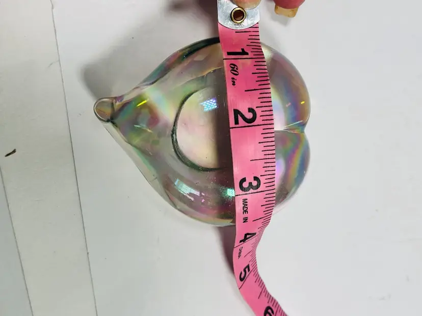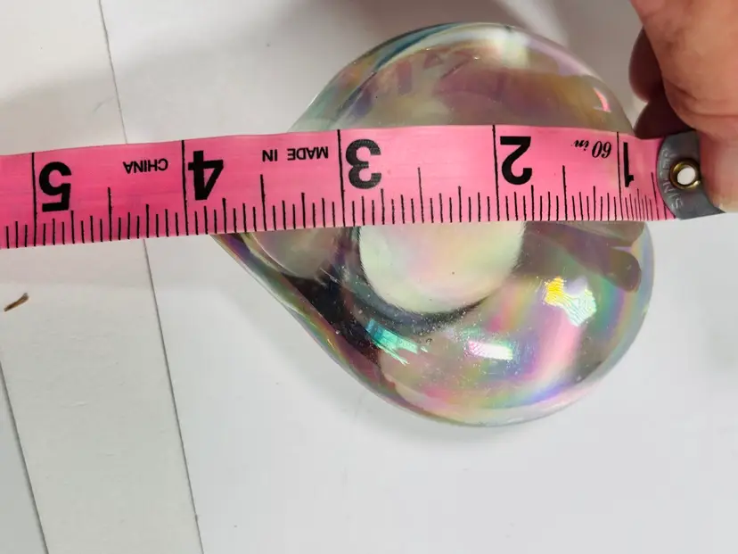 This paperweight is perfect for anyone who appreciates unique and beautiful glassware. Whether you're a collector or just looking for a unique decorative item, this piece is sure to impress. Made with care and attention to detail, this paperweight is a true work of art. Measurements are shown in the pictures. No damage noted