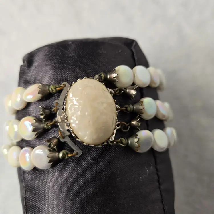 – Shape: Round – Closure: Push Lock – Seller Warranty: No – Signed: Yes – Color: Clear – Material: Rhinestone, Crystal – Year Manufactured: 1950-1959 – Main Stone Color: clear – Metal: Gold Tone – Item Length: 6.5 in – Jewelry Department: Fashion – Vintage: Yes – Brand: Alice Caviness – Setting Style: Prong – Type: Bracelet – Department: Unisex Adults – Metal Purity: Unknown – Main Stone Shape: Baroque – Original/Reproduction: Original – Style: Cuff, Clamp – Base Metal: Gold Toned – Theme: Fashion & Costumes, Beauty