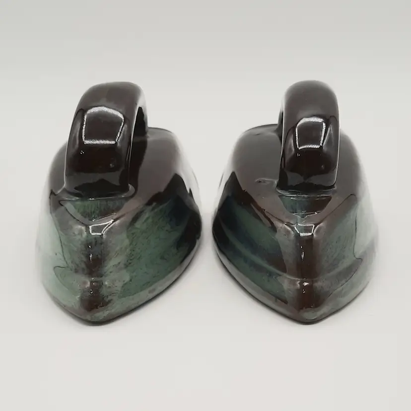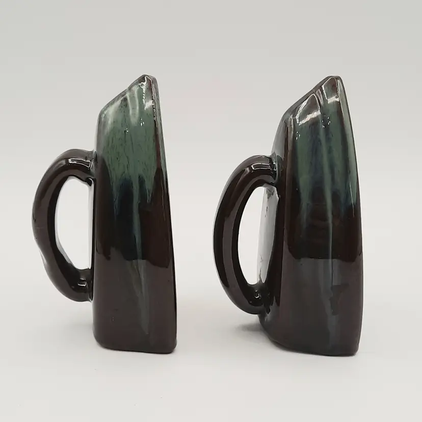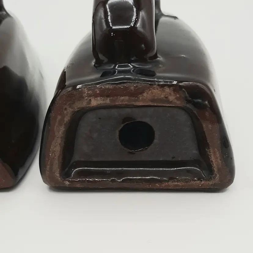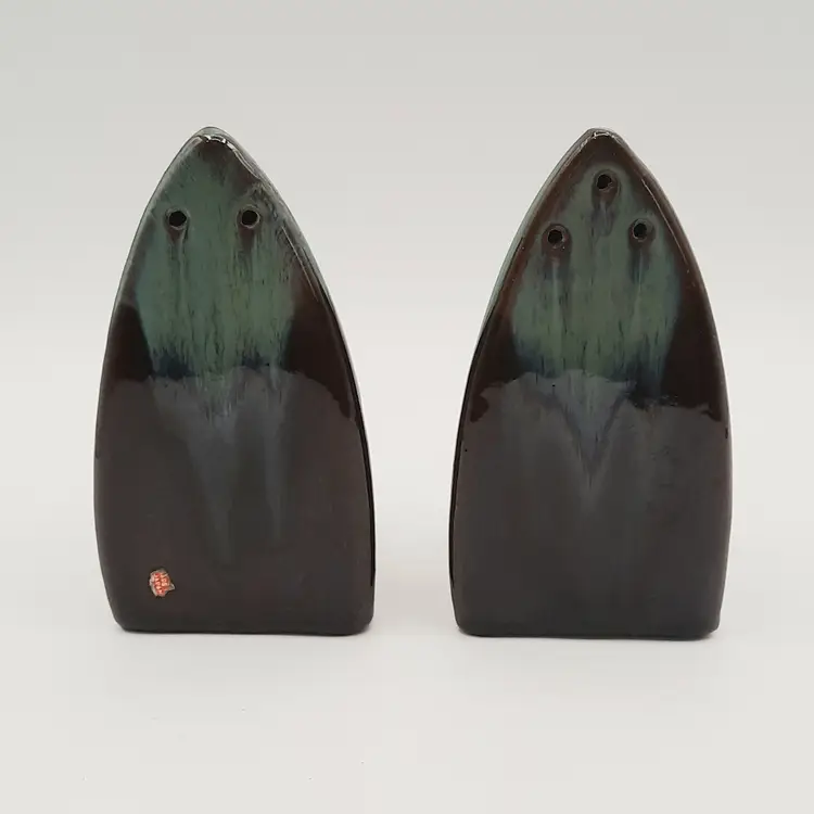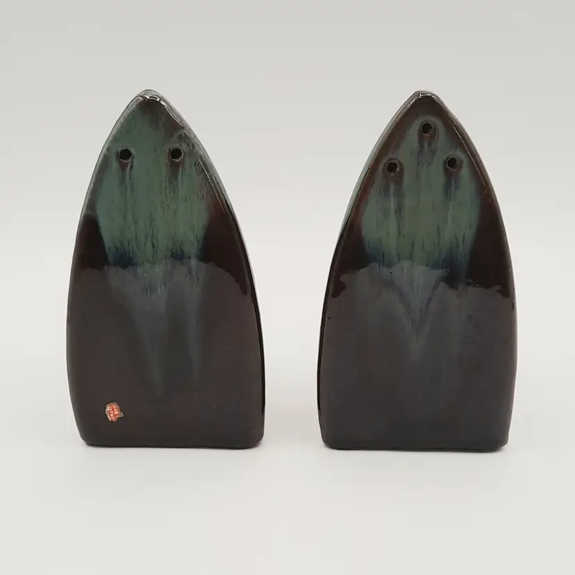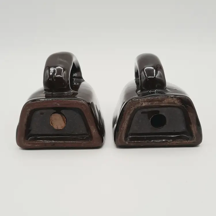 Vintage Japan shakers (one shaker has remnants of a sticker), one shaker has the cork up inside, so would need to replace if actually going to use the shakers, do have some wear/suffs but no chips or cracks, 4 3/4"Hx 2 1/2"W x 2 1/2"D
