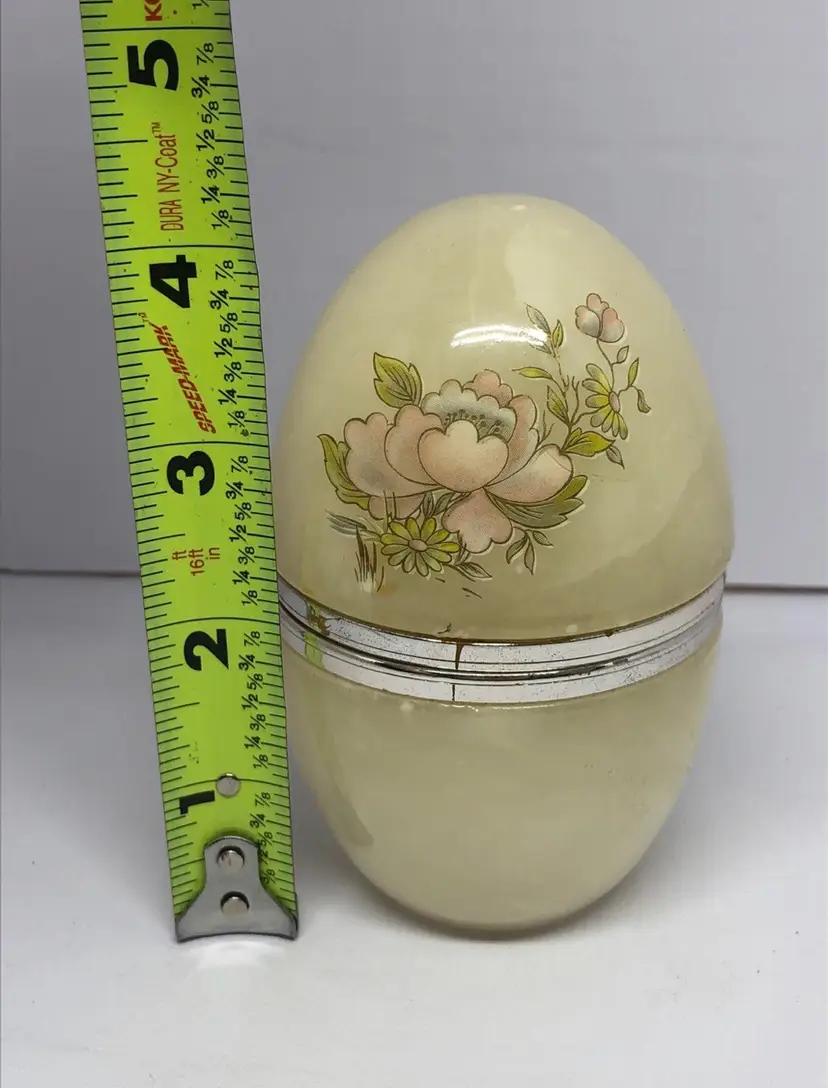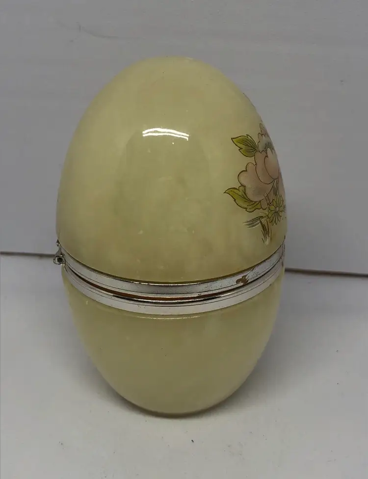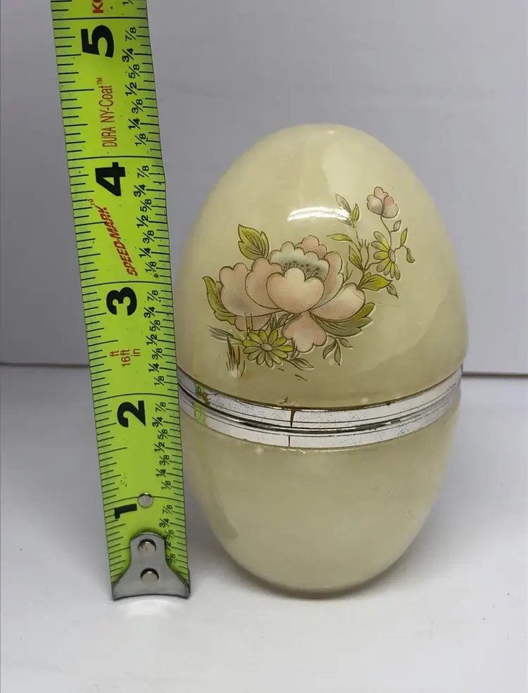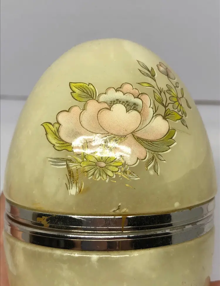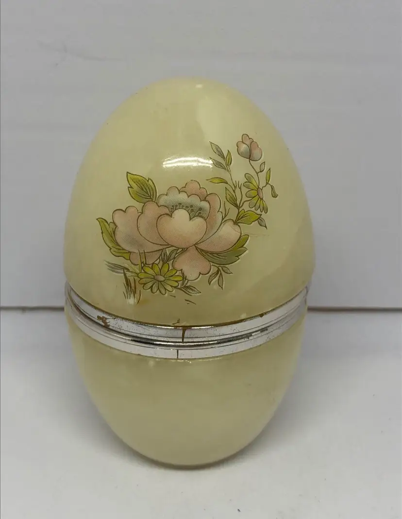 Vintage Italian Alabaster with Flowers Egg Hinged Trinket Box