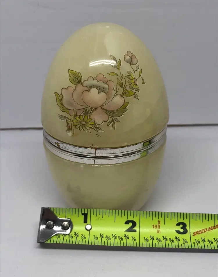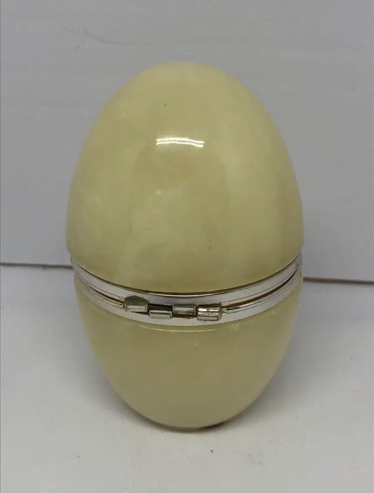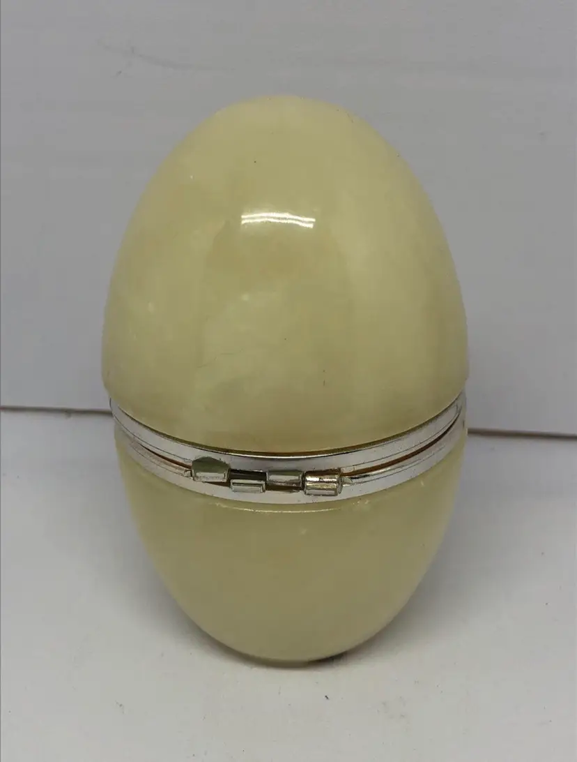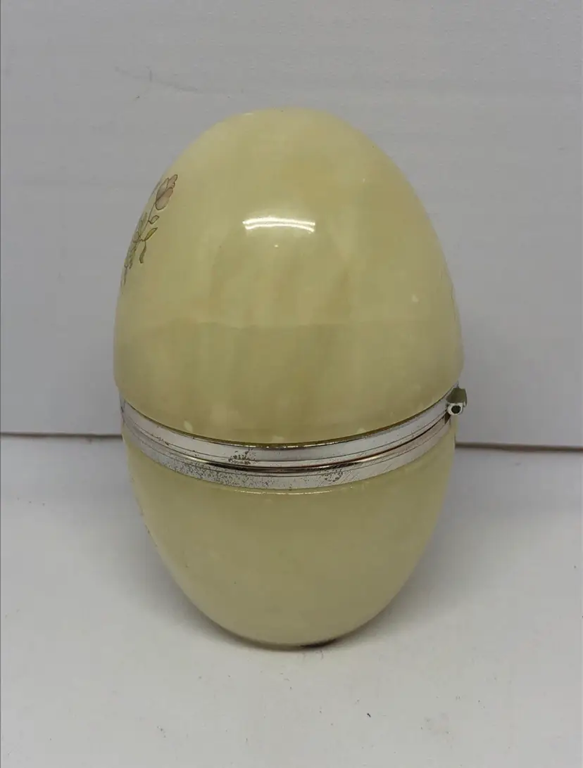Vintage Italian Alabaster with Flowers Egg Hinged Trinket Box