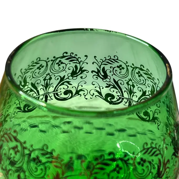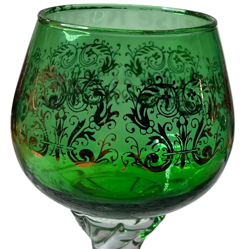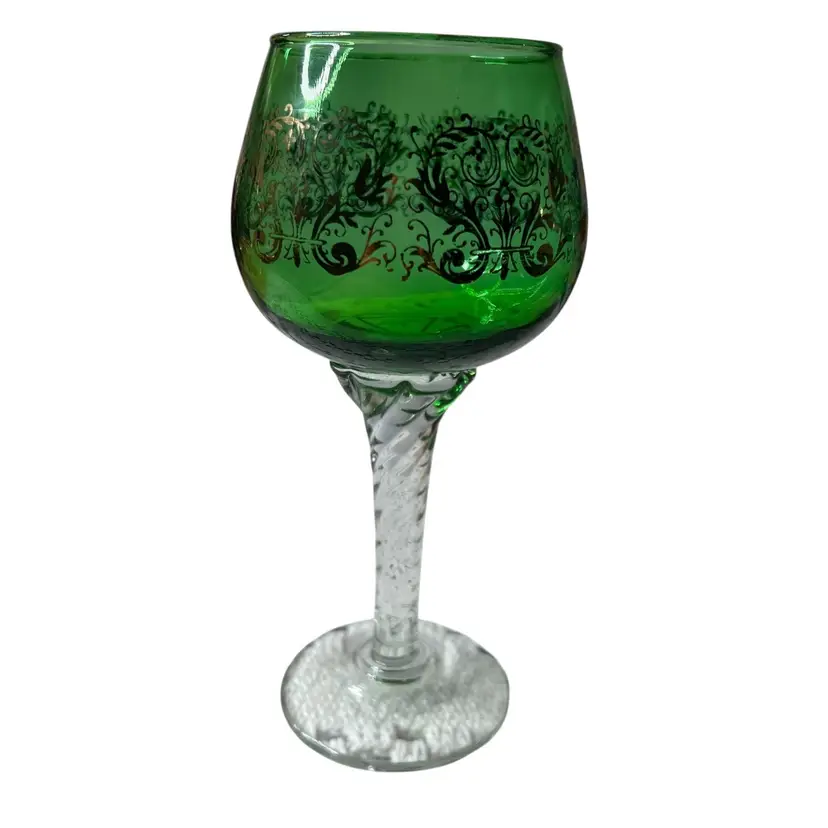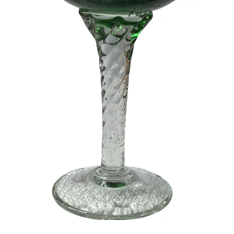 Vintage Italian Blown Green Gilded Murano Twisted Stem Wine Glass