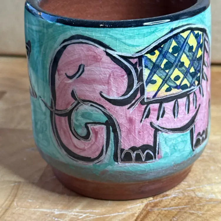 📏 Details • Maker: CREAL (Italy) • Era: Likely 1970s–1990s • Material: Hand-finished earthenware • Design: Hand-painted elephant with patterned blanket • Colors: Turquoise, terracotta, soft pink, yellow accents • Condition: No chips or cracks