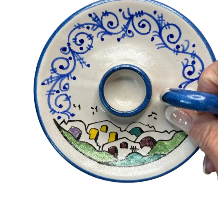 Vintage Italian Hand Painted Candle Holder @5” Diameter