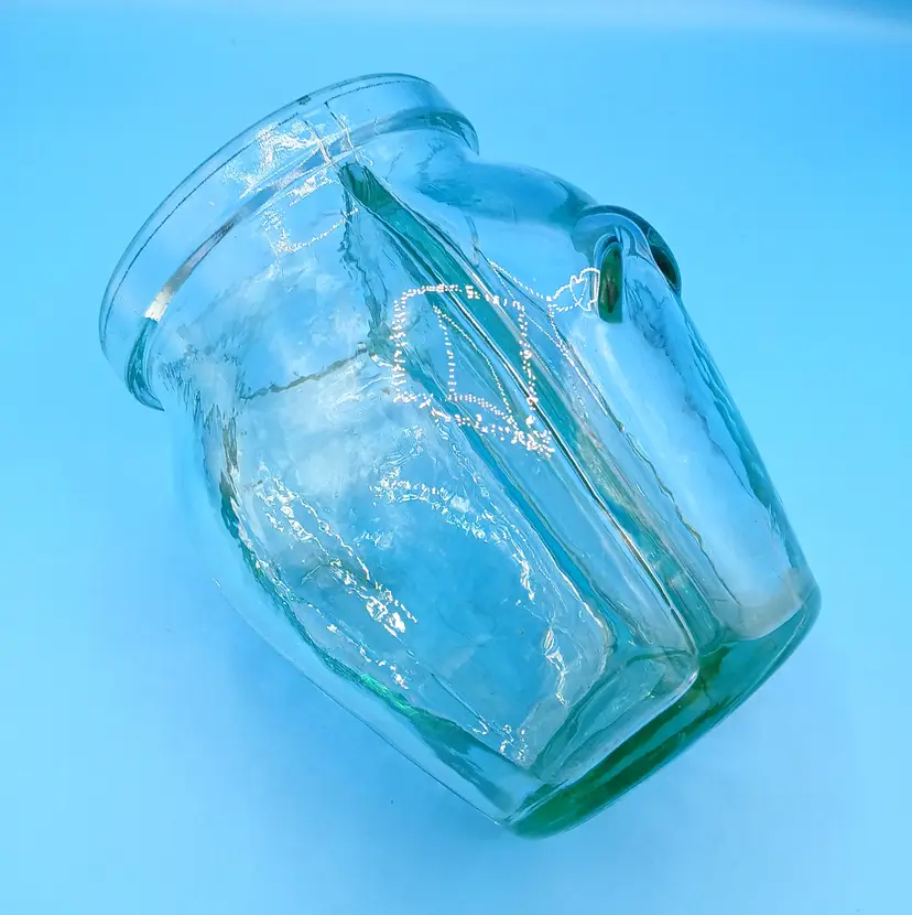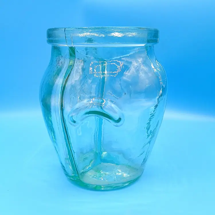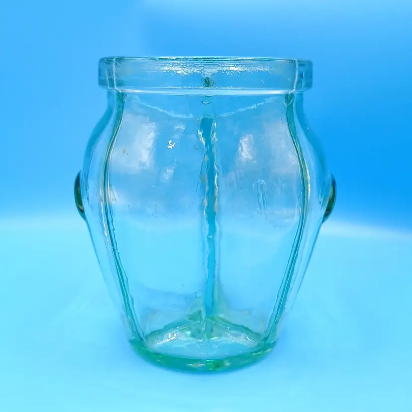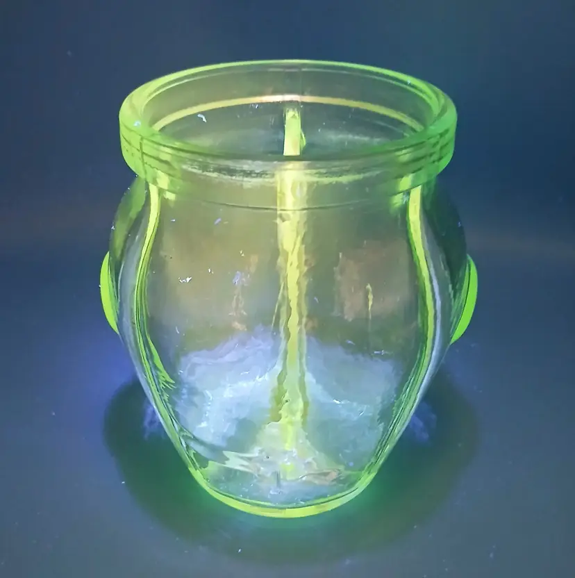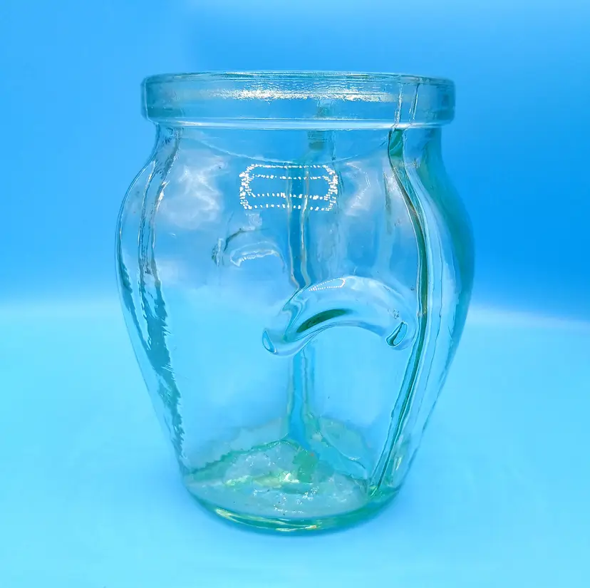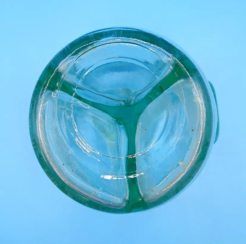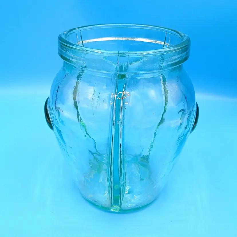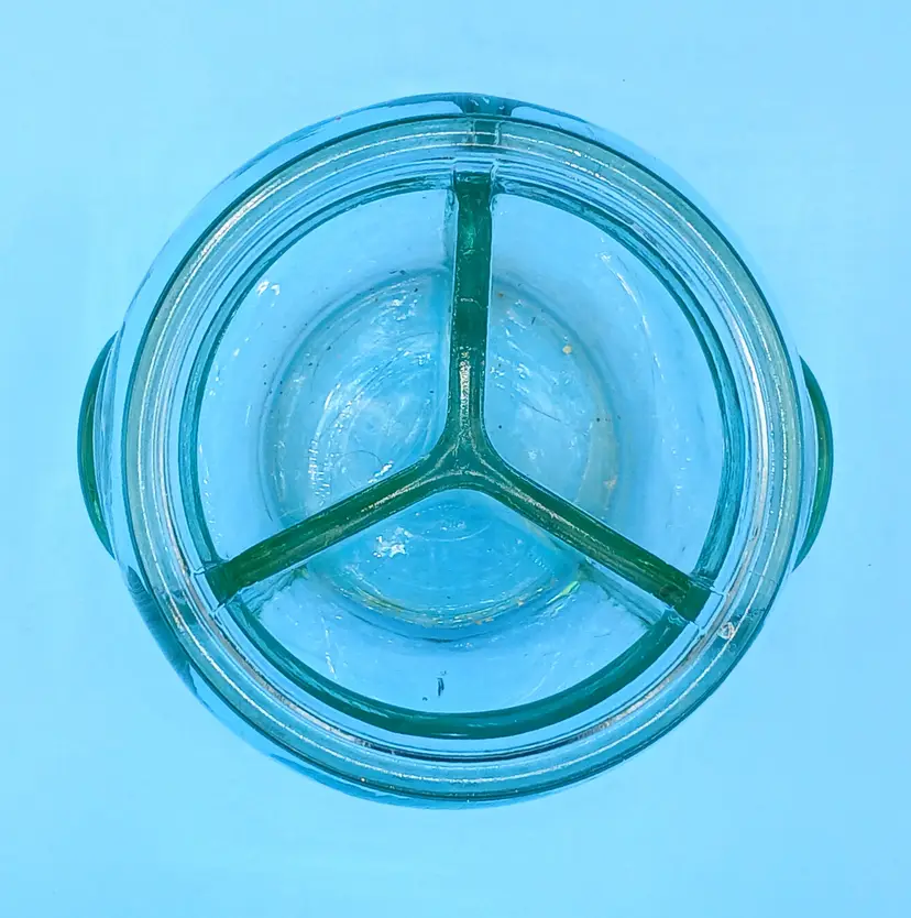 Approx 5.5" Tall and 3.25" Diameter on the INSIDE of the opening (in case you want to get the cork lid). No damage noted to this 3 section, divided storage jar. And it glows! Thanks for looking!