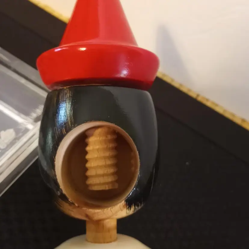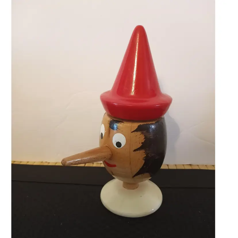 Vtg Italian Handmade Wood Pinocchio Nutcracker, note on bottom gives provenance and has date 1991. Possibly made in '80s but not purchased till '90s. Excellent condition, no cracks or missing paint. Works! 6.5" tall. 4" wide.