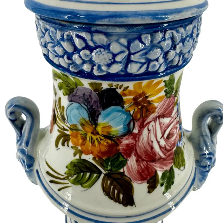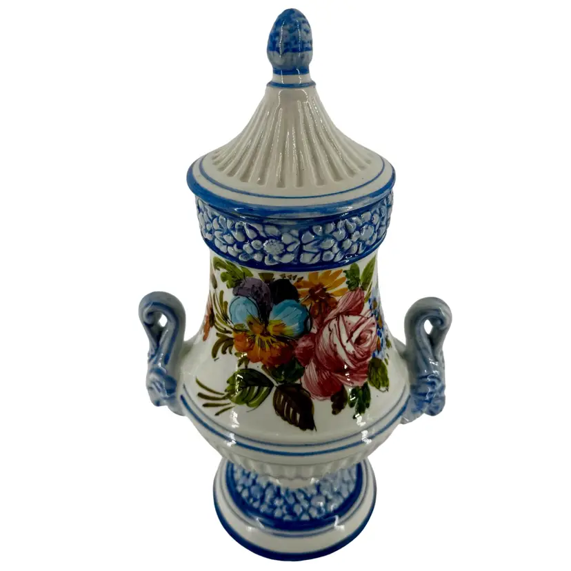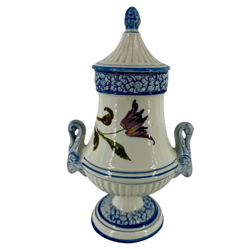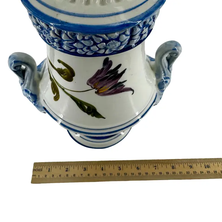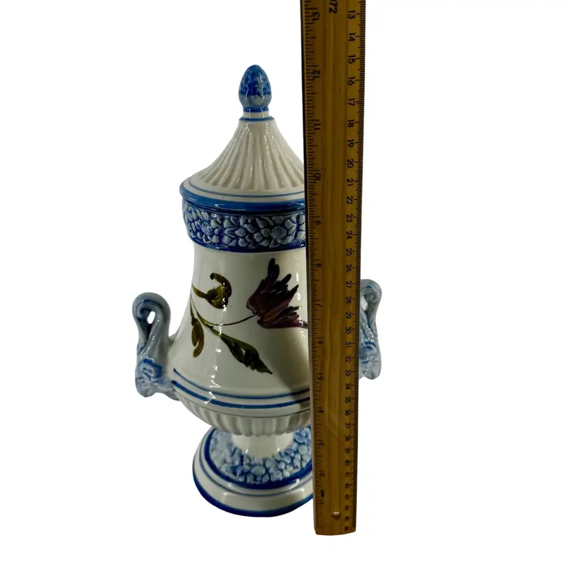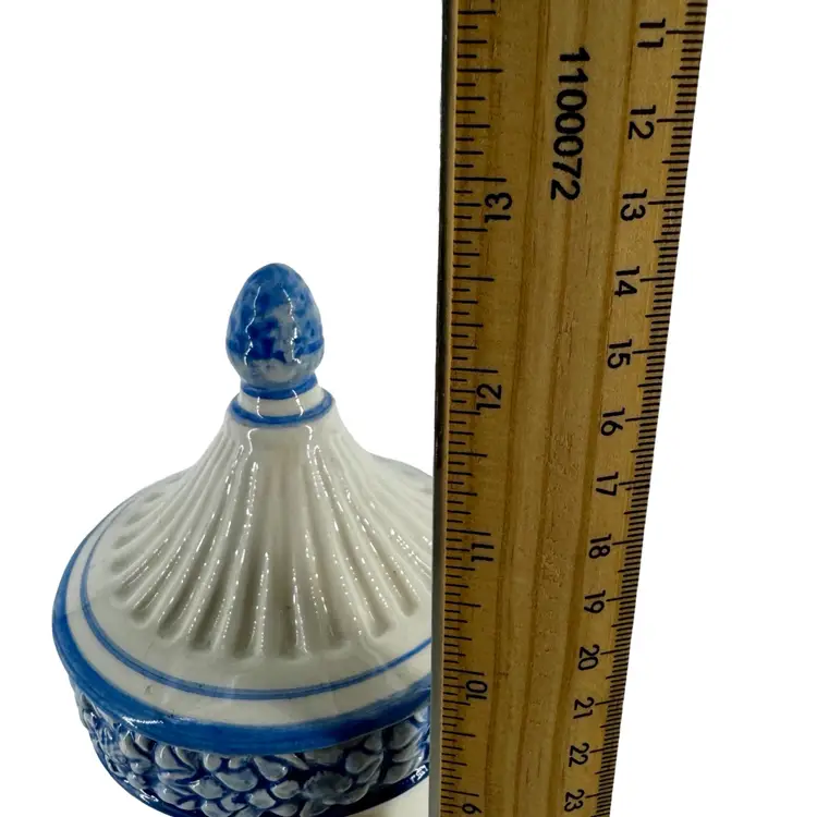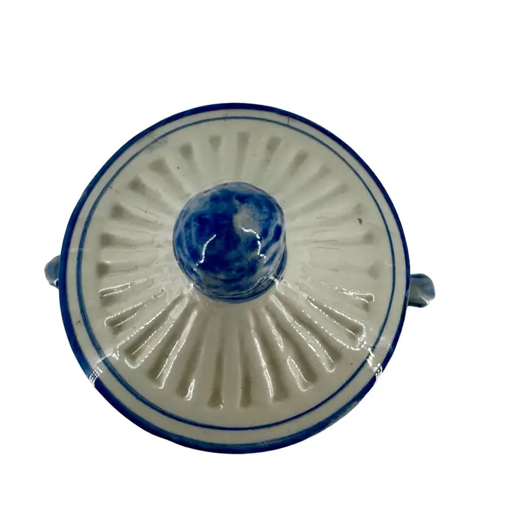 In very good vintage condition; there is a small smooth mark and hairline crack that does not go through on the lid. Please review pictures as part of the description. Measures approximately 8”L x 12”T.