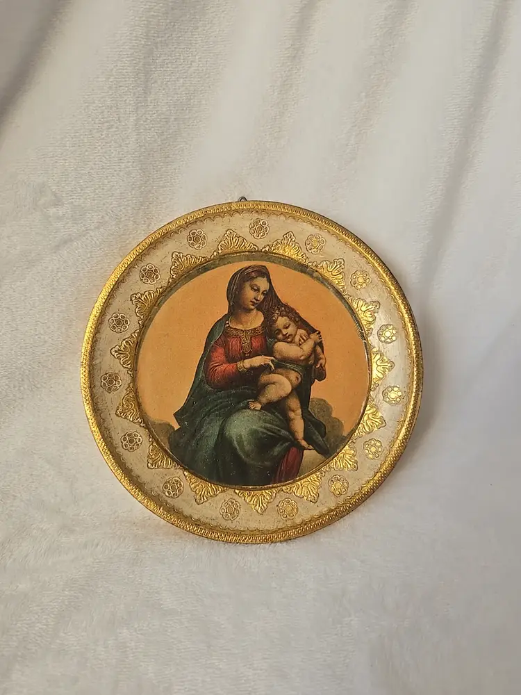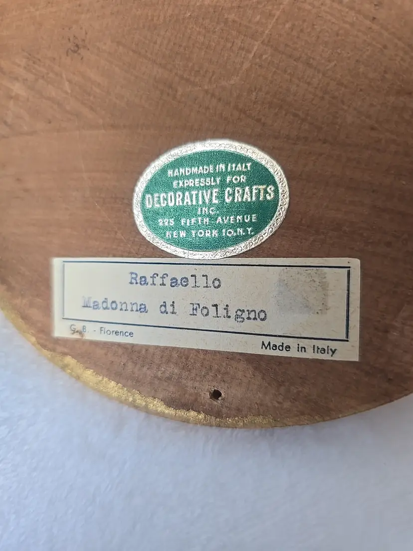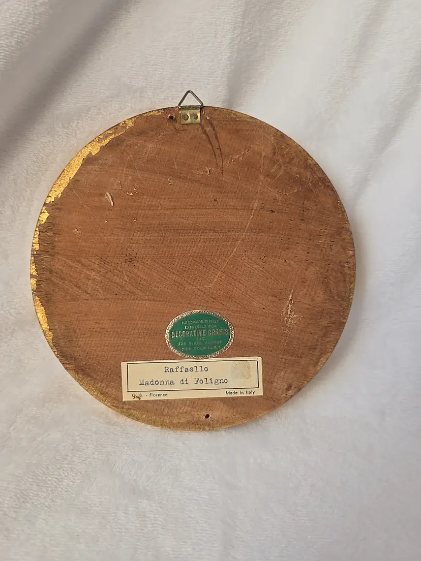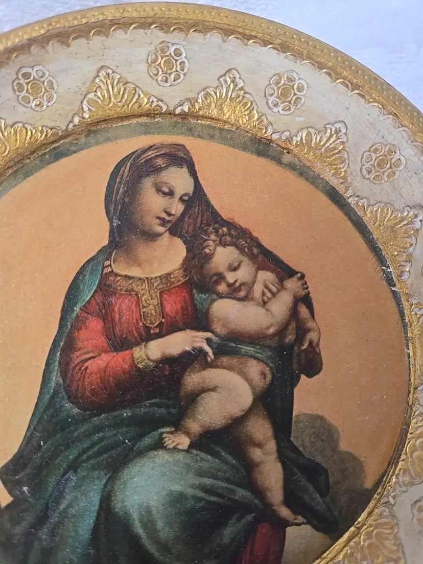 Hashtags / Keywords: #ItalianDecor #FlorentineArt #MadonnaAndChild #RaphaelArt #ReligiousPlaque #VintageWallArt #CatholicCollectible