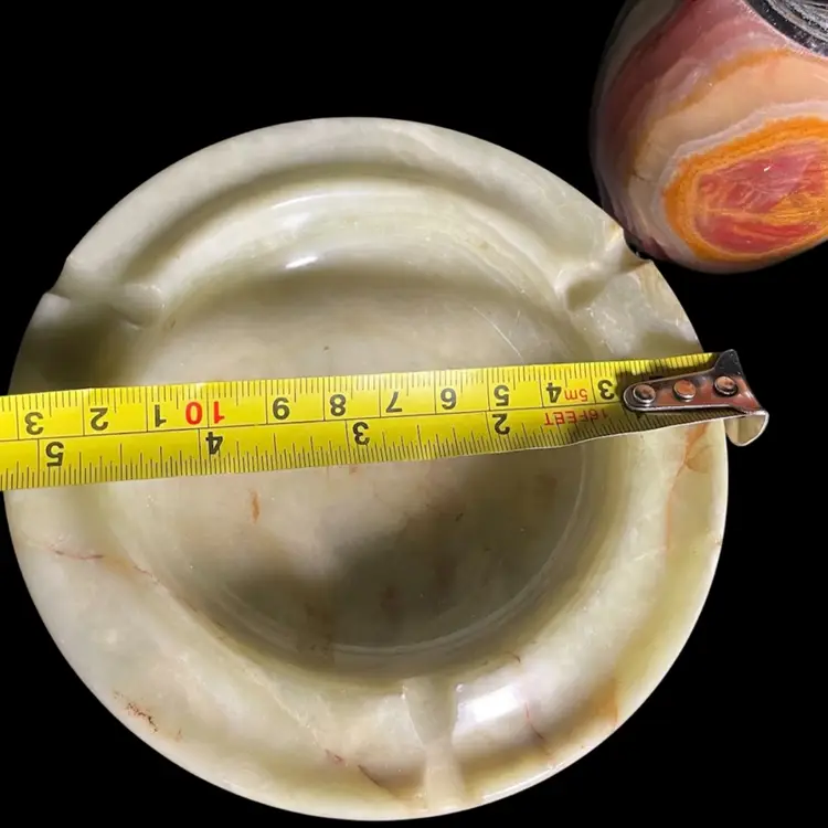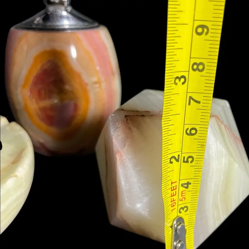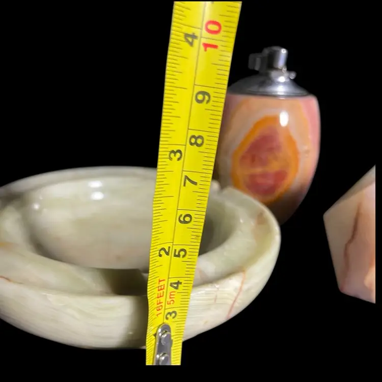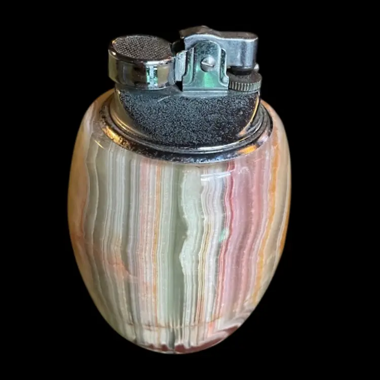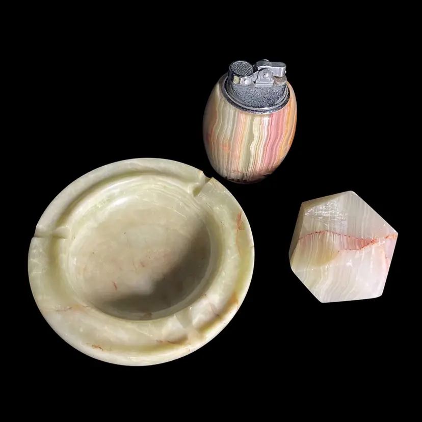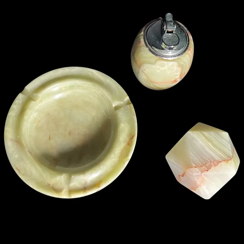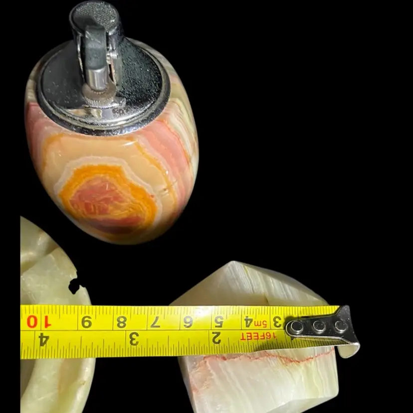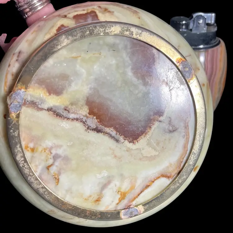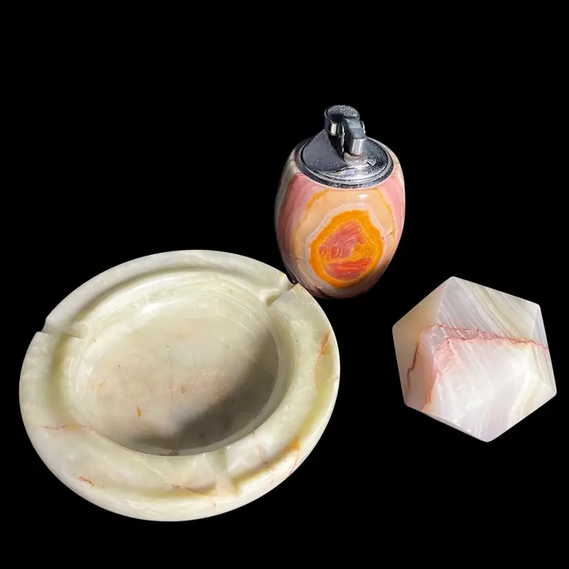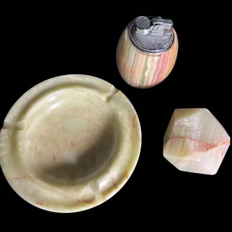 Vintage Italian Onyx and Brass Ashtray, Cigarette Lighter and Paperweight Set. Paperweight has some damage, see pics. Condition is Used. Shipped with USPS Mail