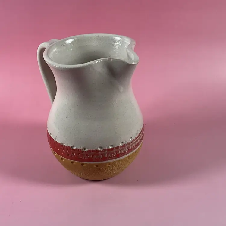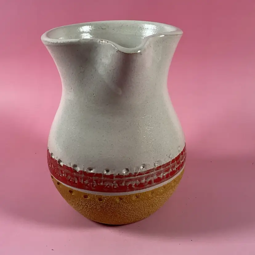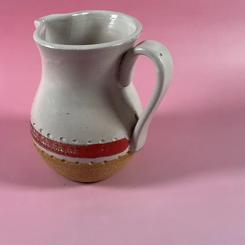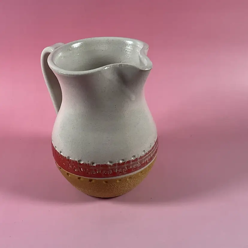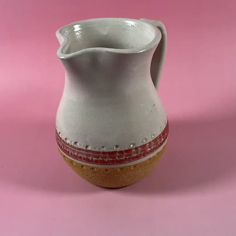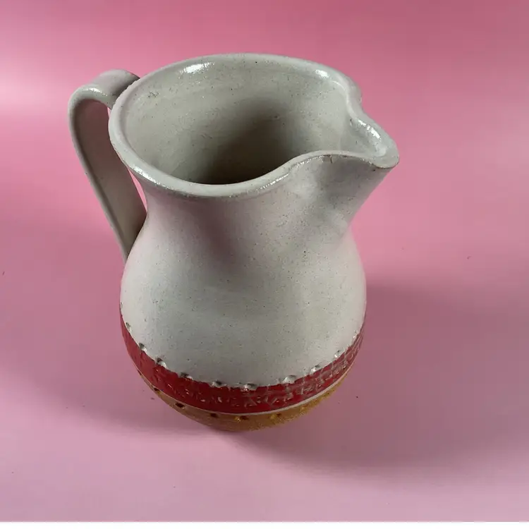 Great pre owned Italian pottery creamer / milk pitcher. Approximately 5” tall. Marked on bottom.