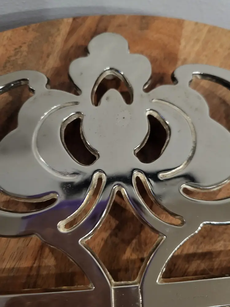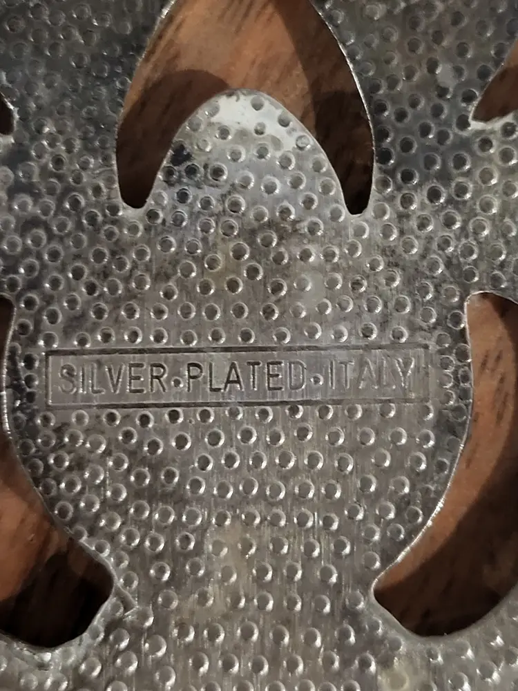 Nice shape trivet. Marked Italy on back. A couple small marks, see pictures, not very noticeable. Shipping cost is based on your location, size and weight of box item is shipped in. If you feel shipping cost is to high let me know what your zip code is and I can see if there is a cheaper option. Shipping is done by USPS, I choose cheapest option when listing but shipping will be USPS. I do combine shipping if you buy more than one item from my store. Any questions please do not hesitate to ask.