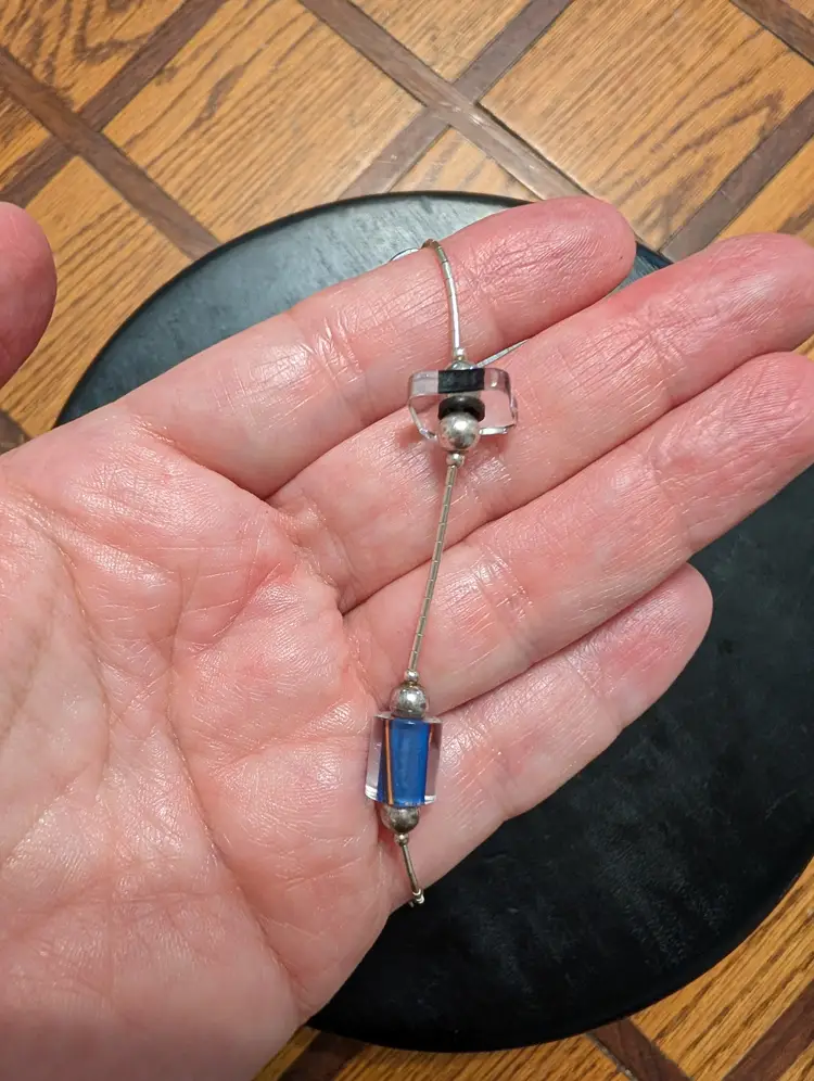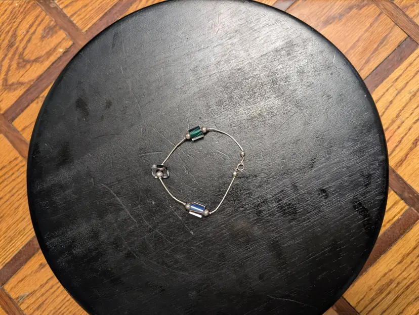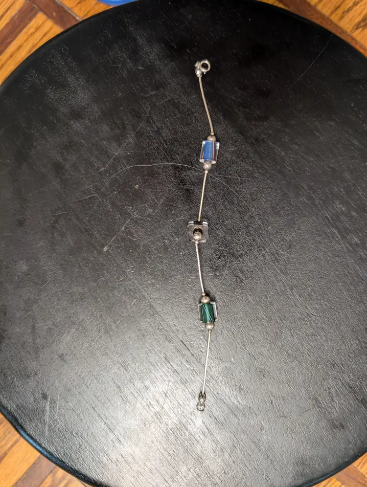 Beautiful bracelet. It measures 7.5 in very unique the square bead.