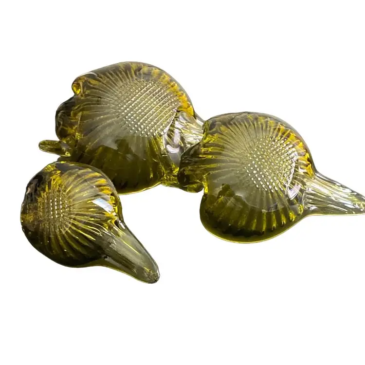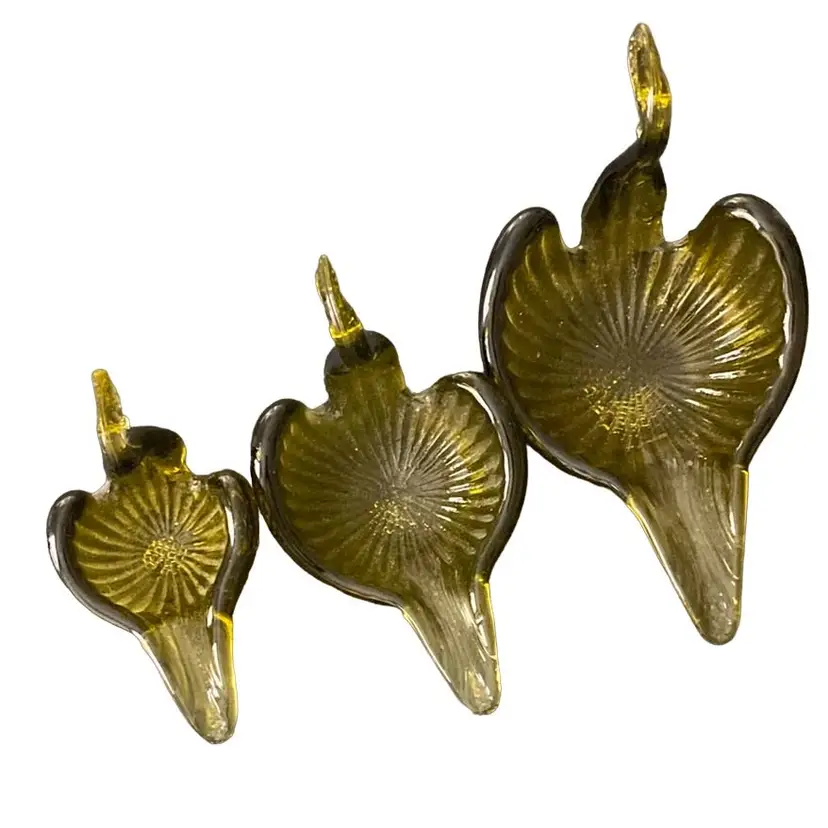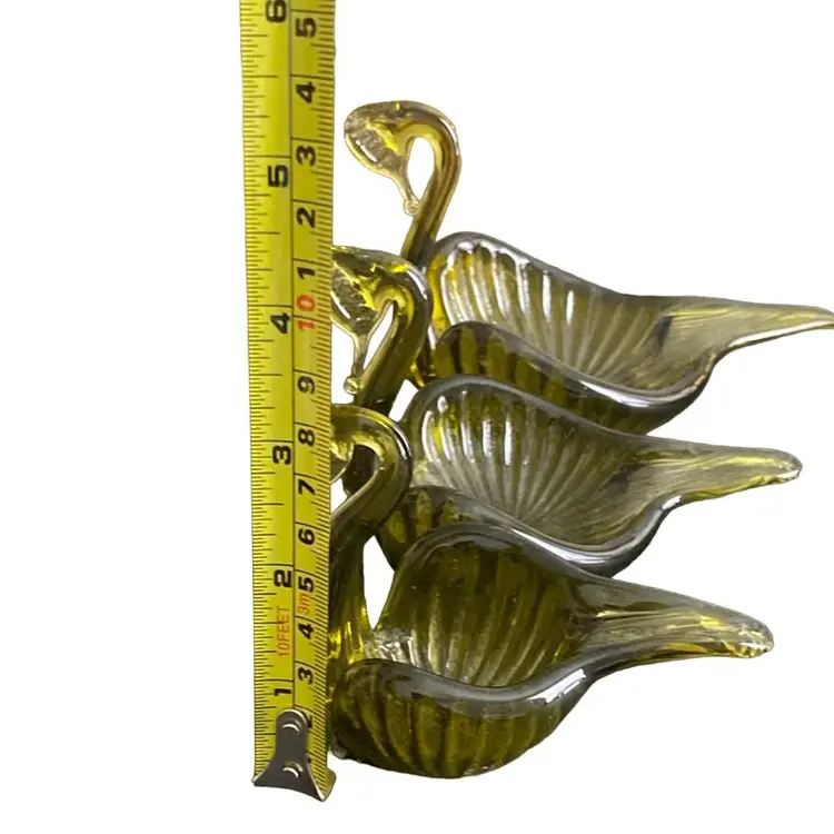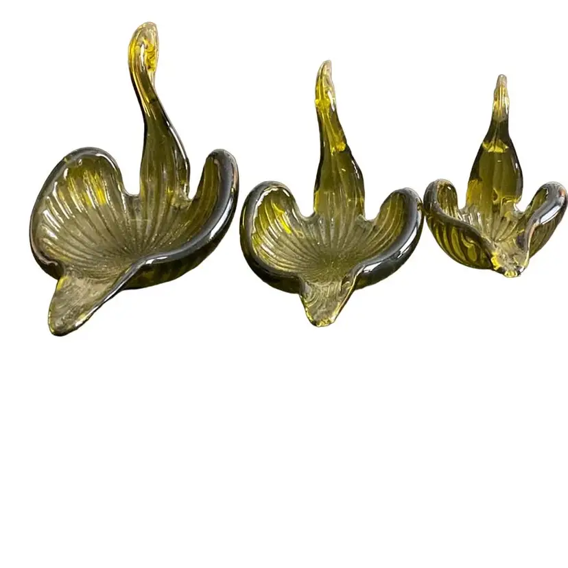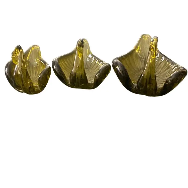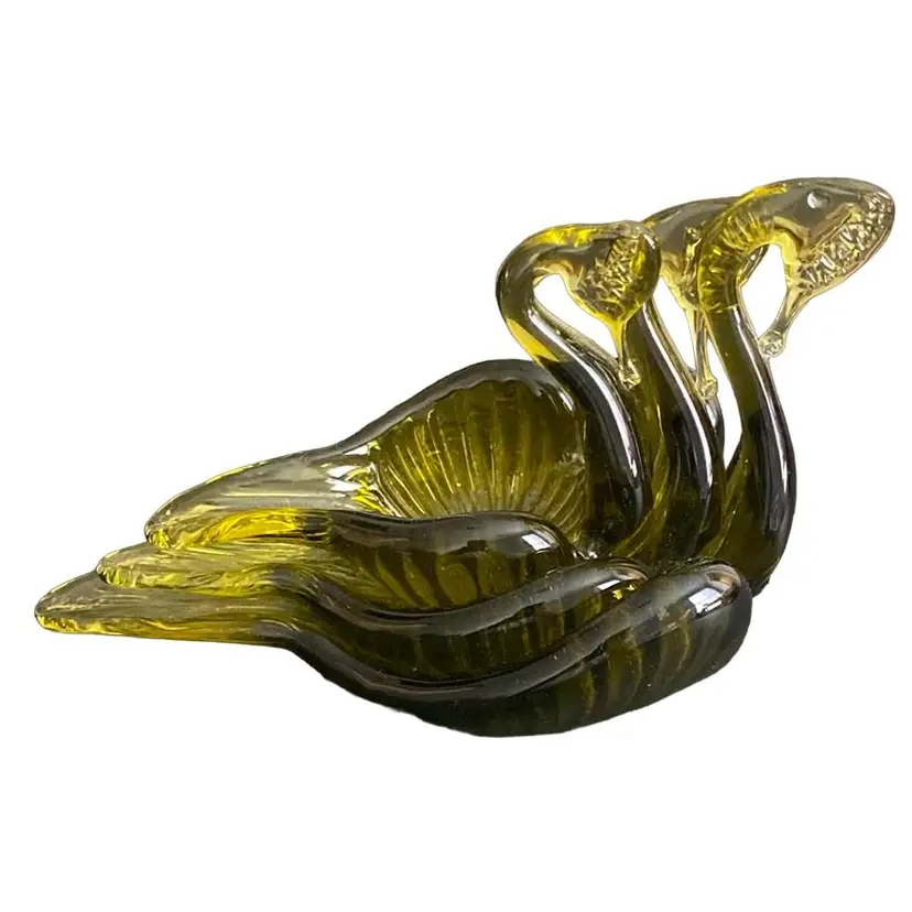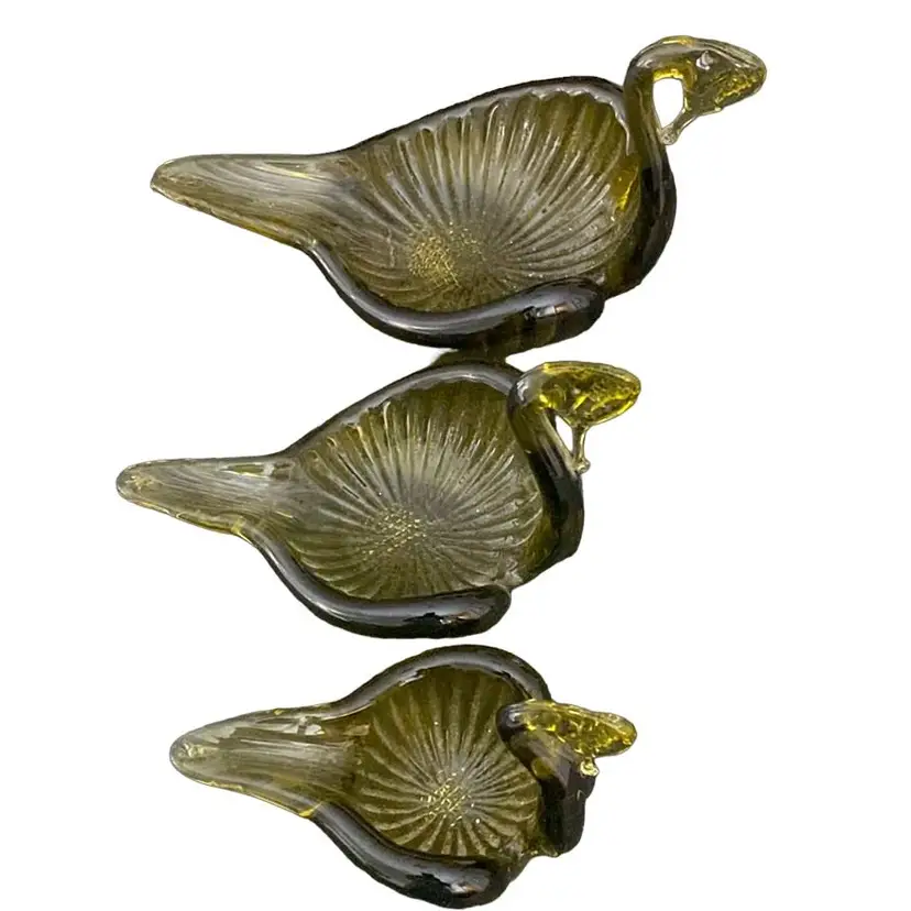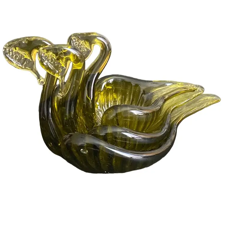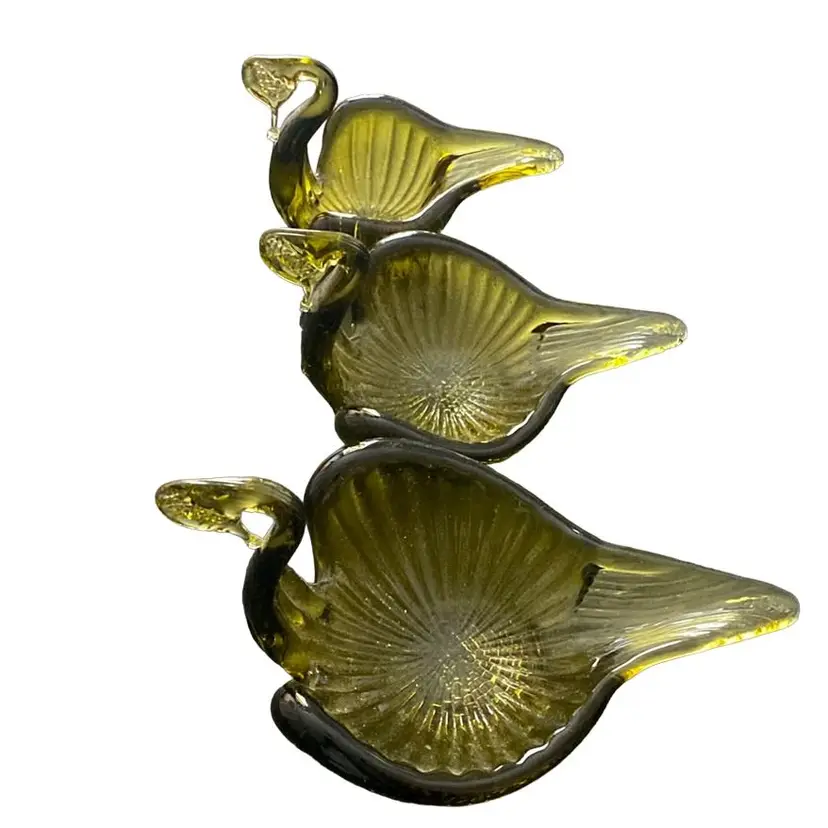 MCM Olive, nesting, glass swans candy trinket dishes.