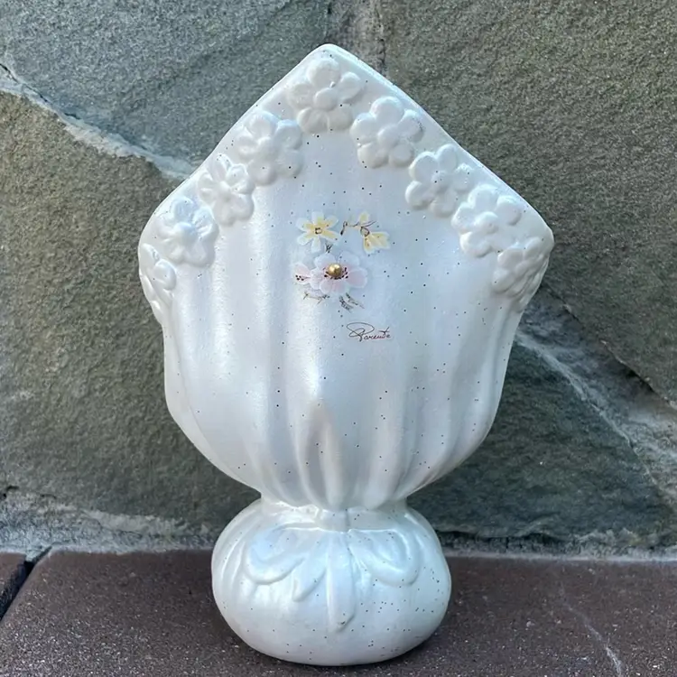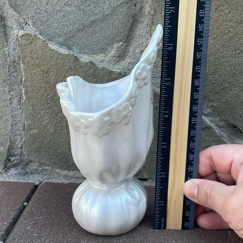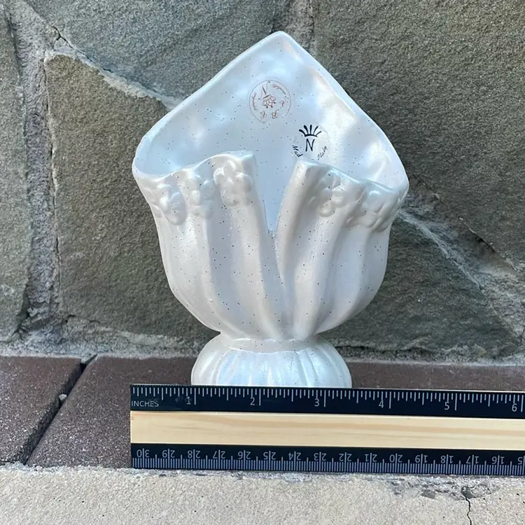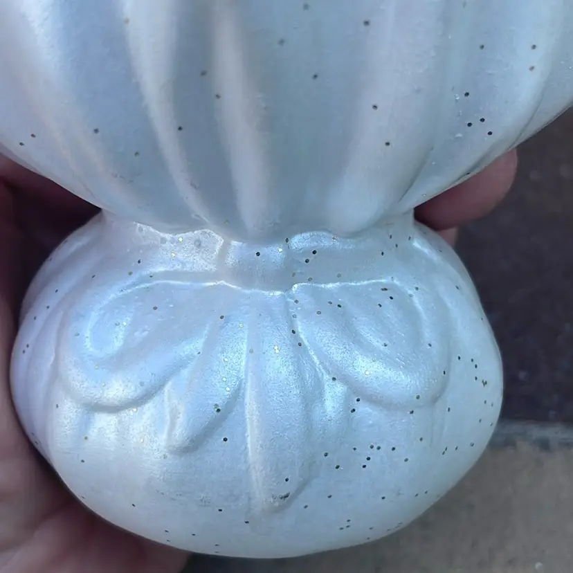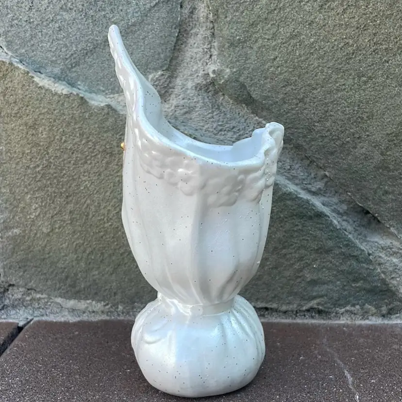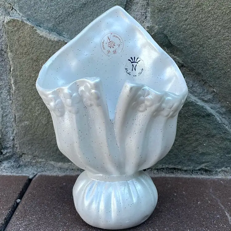 Vintage Italian Vase in Pearl White Touched With Gold Speckles Flower detailed Gold Center - Signed