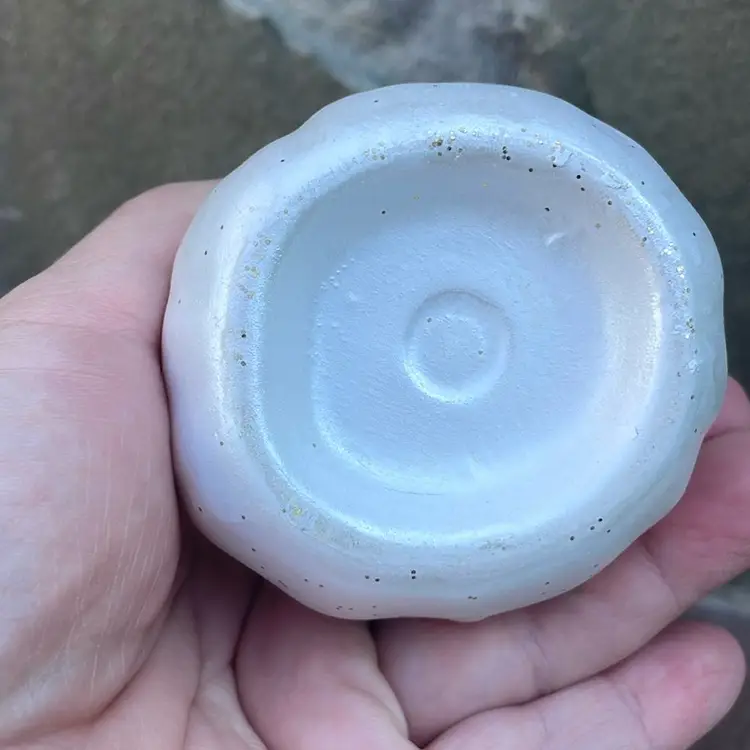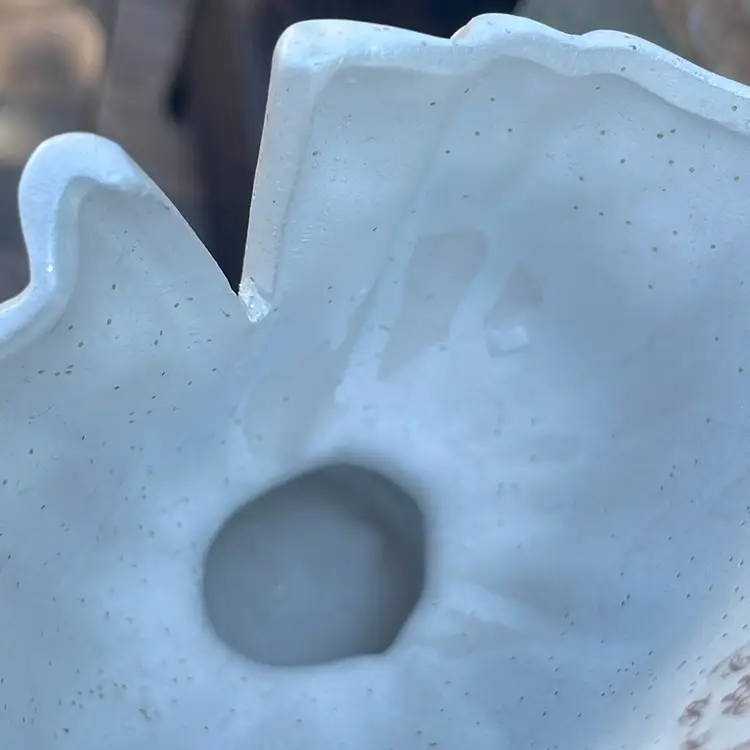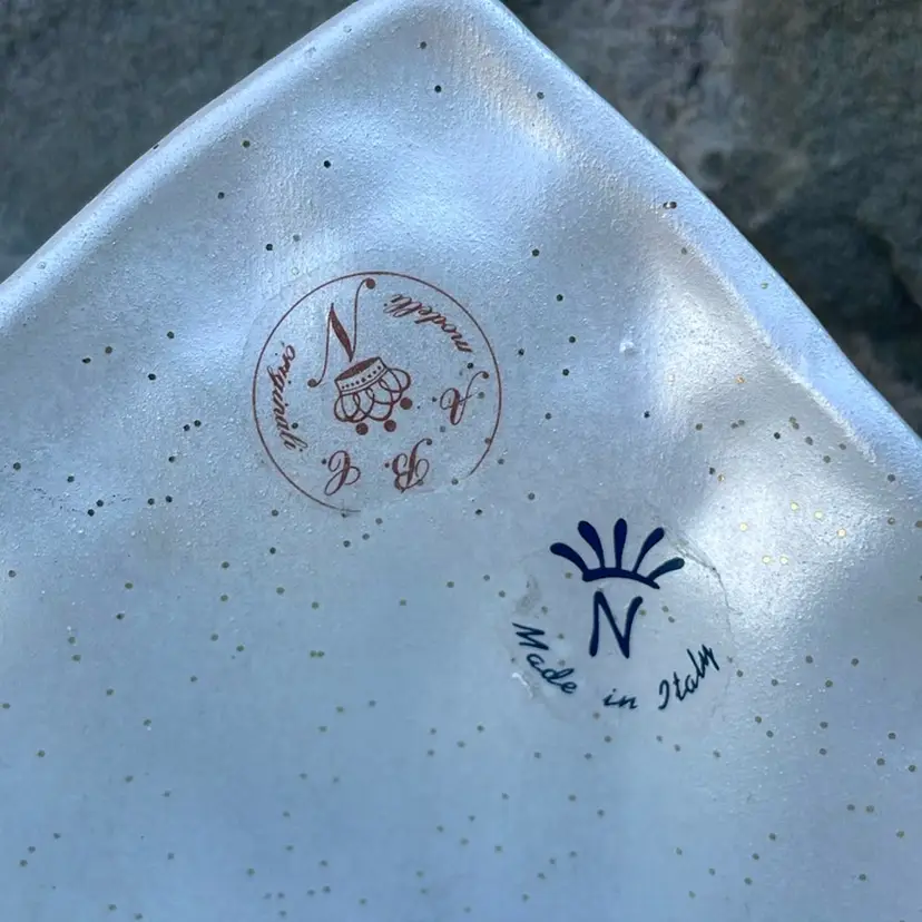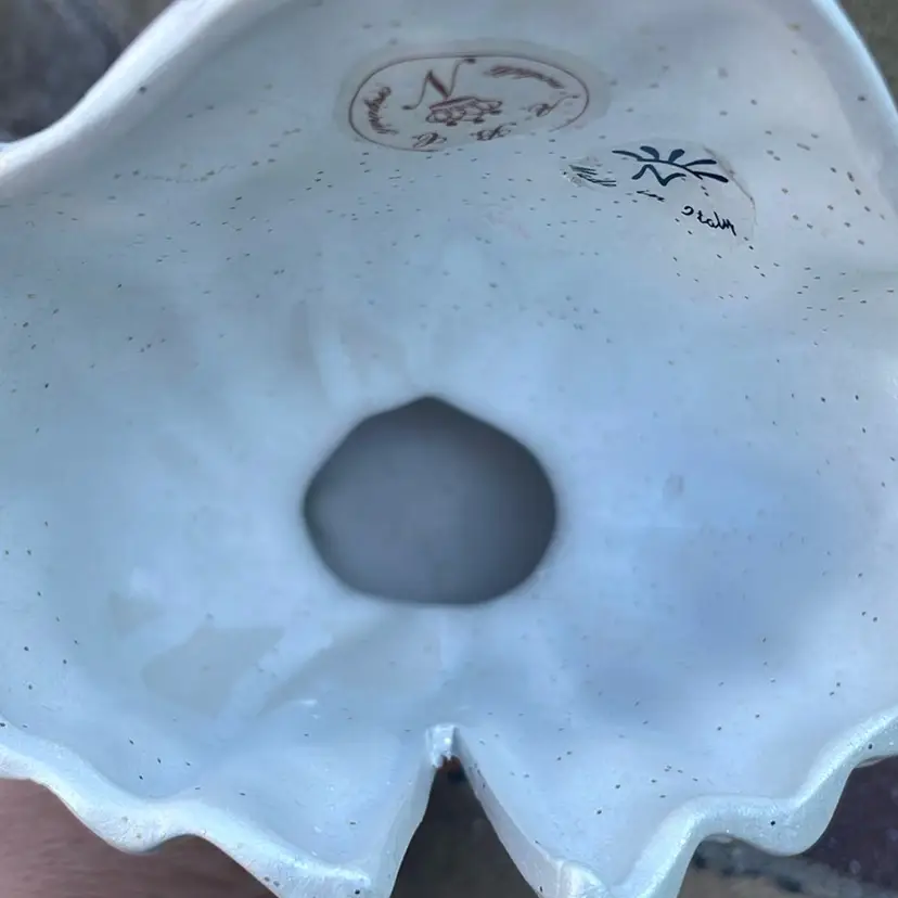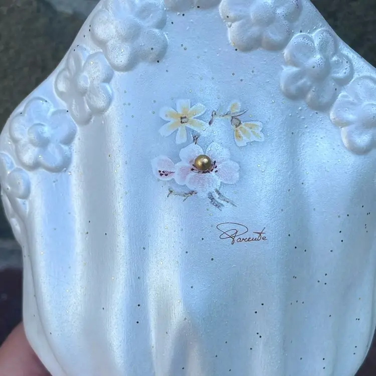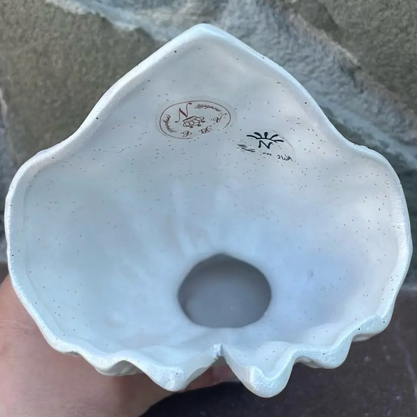 Vintage Italian Vase in Pearl White Touched With Gold Speckles Flower detailed Gold Center - Signed