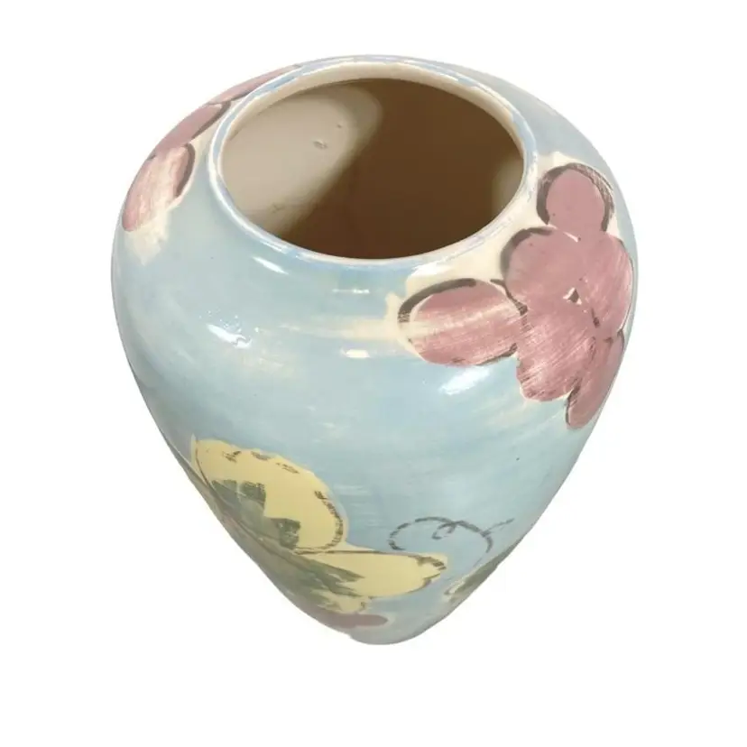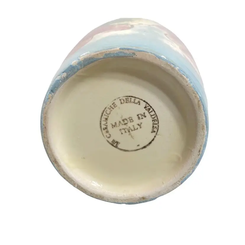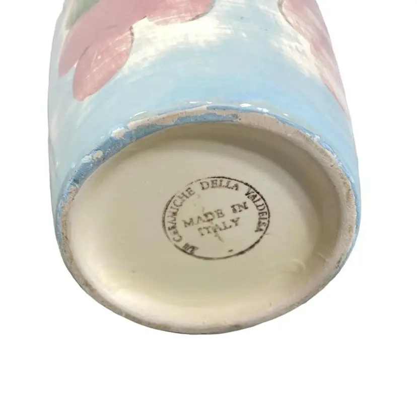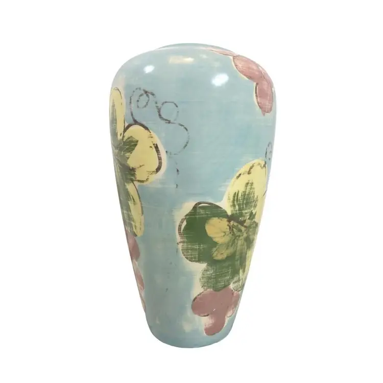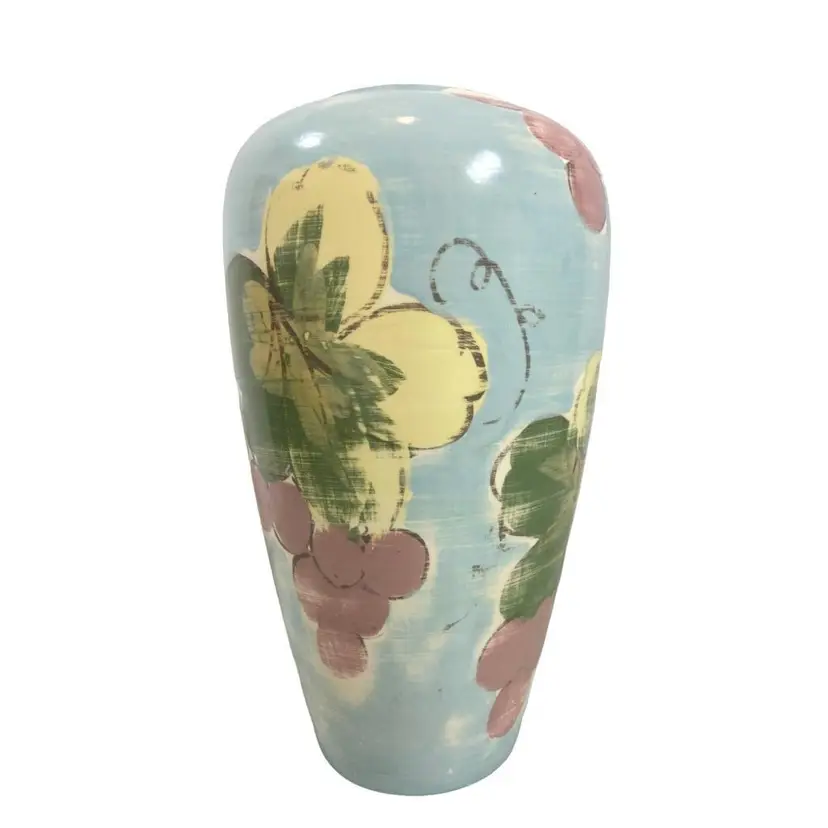 Vintage 10" muted blue, purple, green and yellow grape, and leaves vase. Hand painted with a top glaze. The vase in in good vintage condition.