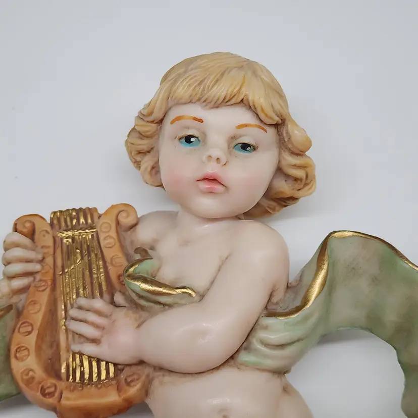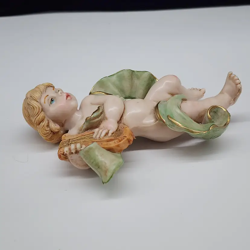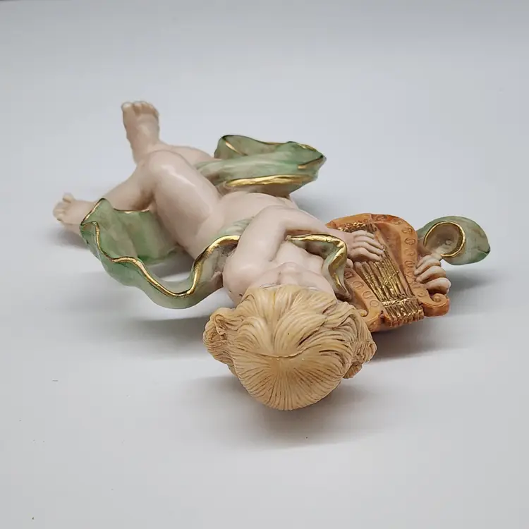 This Angel is clearly ready for a musical career, though you might want to keep him off the X-Factor. A whimsical addition to any collection. 6" Missing wings • Hand-Painted Design • Made in Italy • Intricate Harp Detailing • Measures Approximately 6 Inches in Length