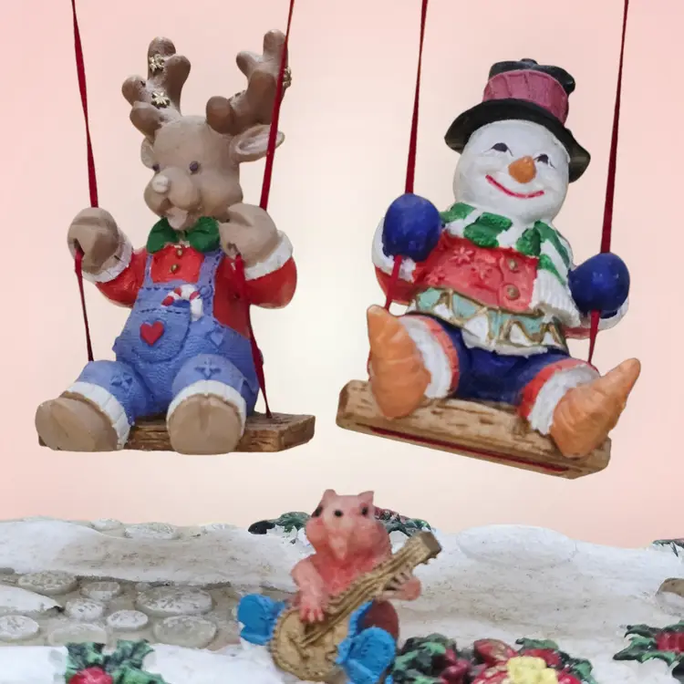 Vintage Jaimy Holiday Christmas Swings Resin Figures on Tree Swings 1997