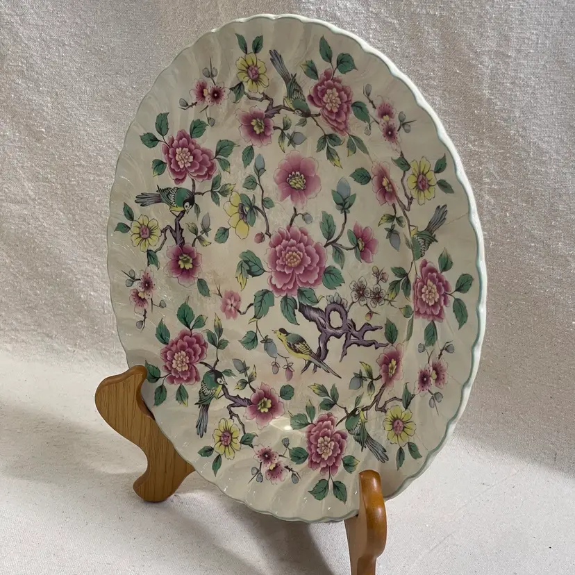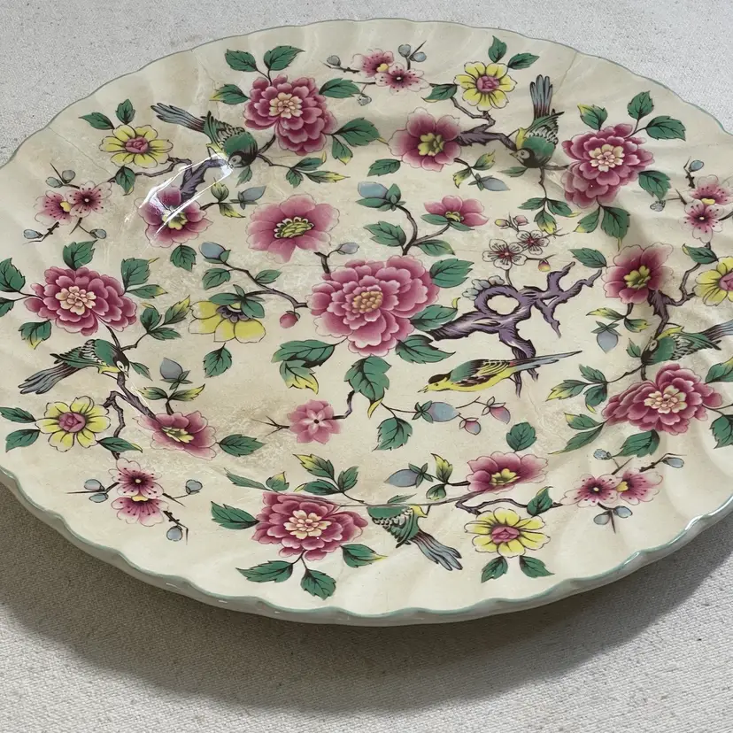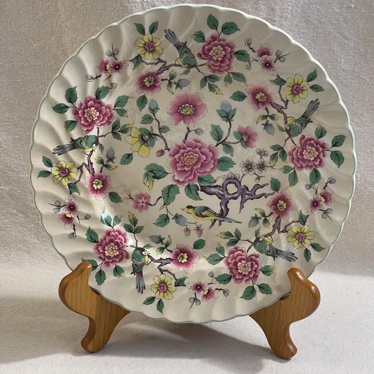 Add a touch of vintage charm to your cottage decor with this beautiful James Kent Ltd Chinese Rose "Old Foley" Plate. Made in England from high-quality ceramic.