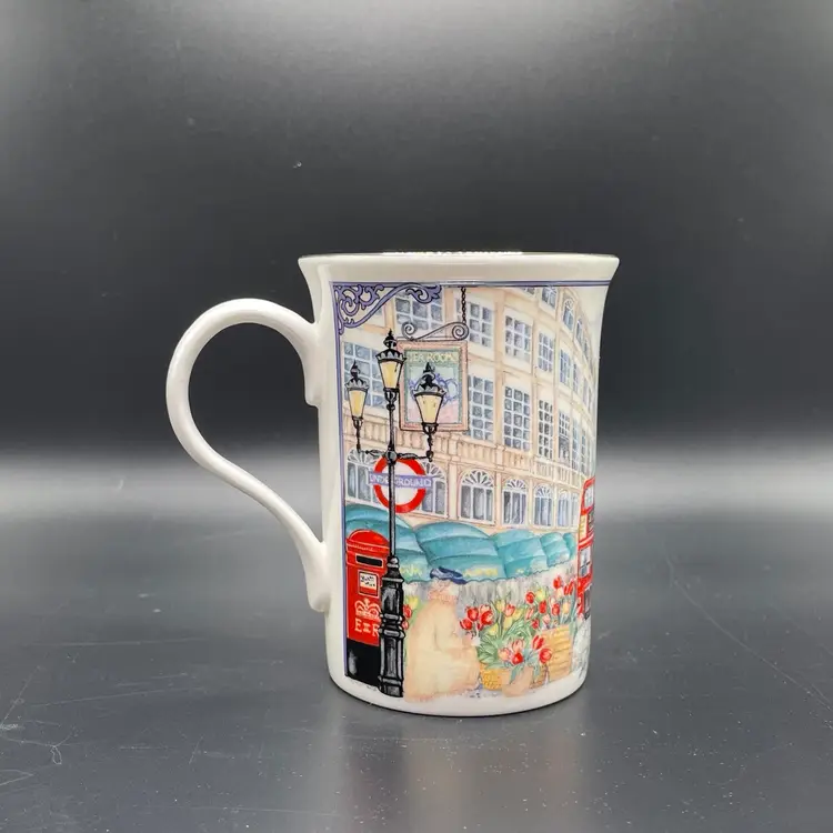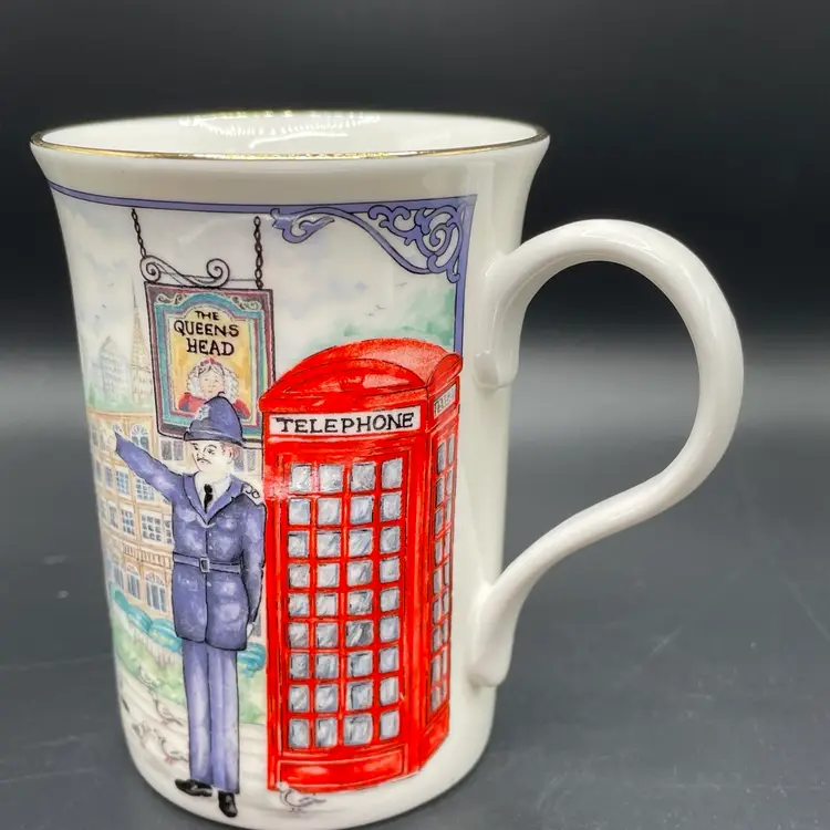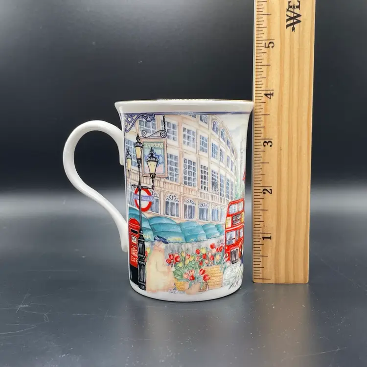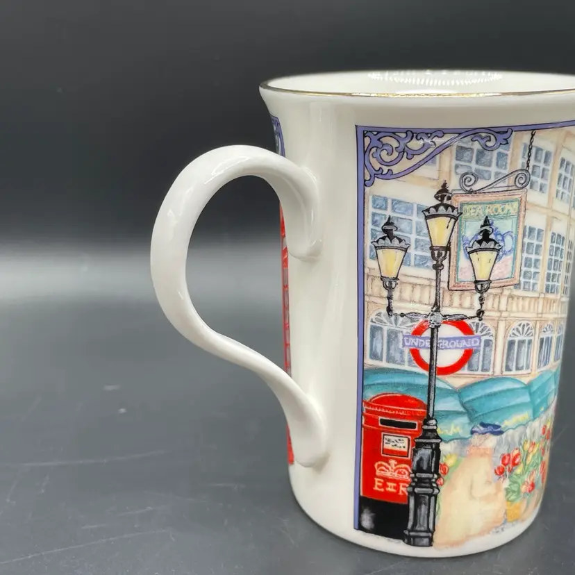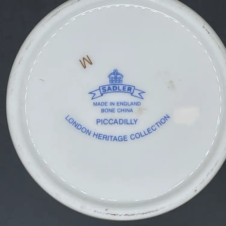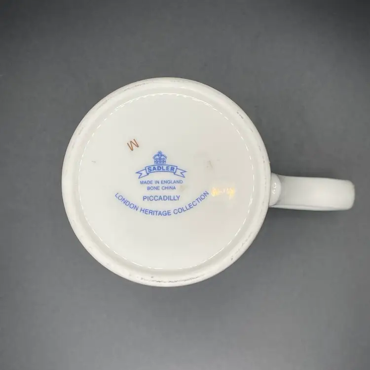 This is a vintage James Sadler Best of British "Piccadilly" bone china tea cup/mug. Made in England. Measures approximately 4" tall x 2.5" across, and holds approximately 8fl oz . No chips or cracks. #BC2