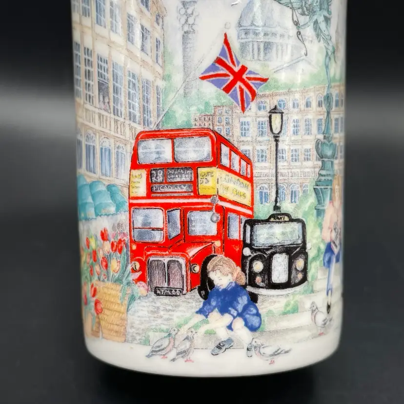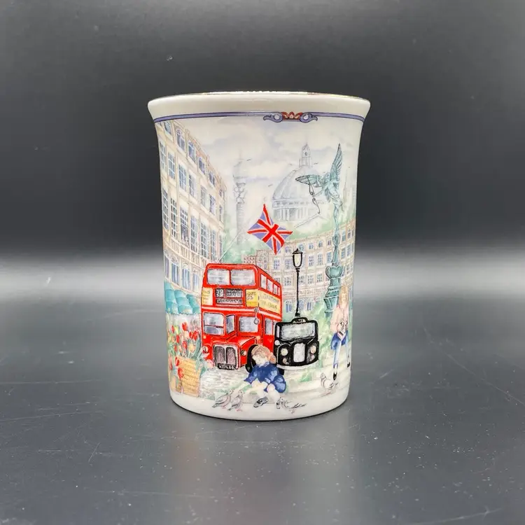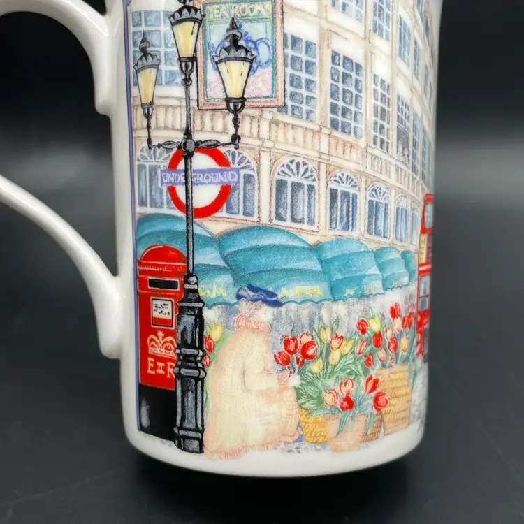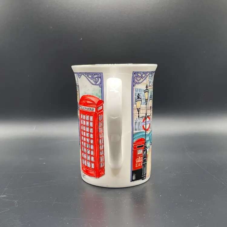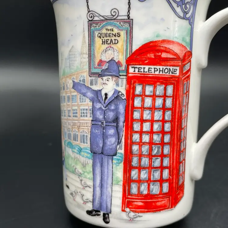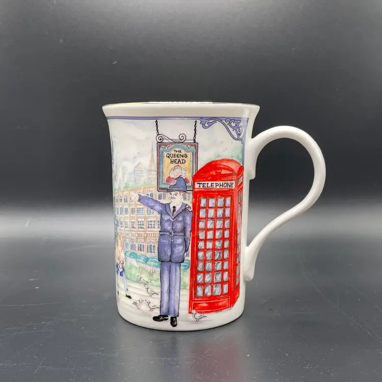 This is a vintage James Sadler Best of British "Piccadilly" bone china tea cup/mug. Made in England. Measures approximately 4" tall x 2.5" across, and holds approximately 8fl oz . No chips or cracks. #BC2