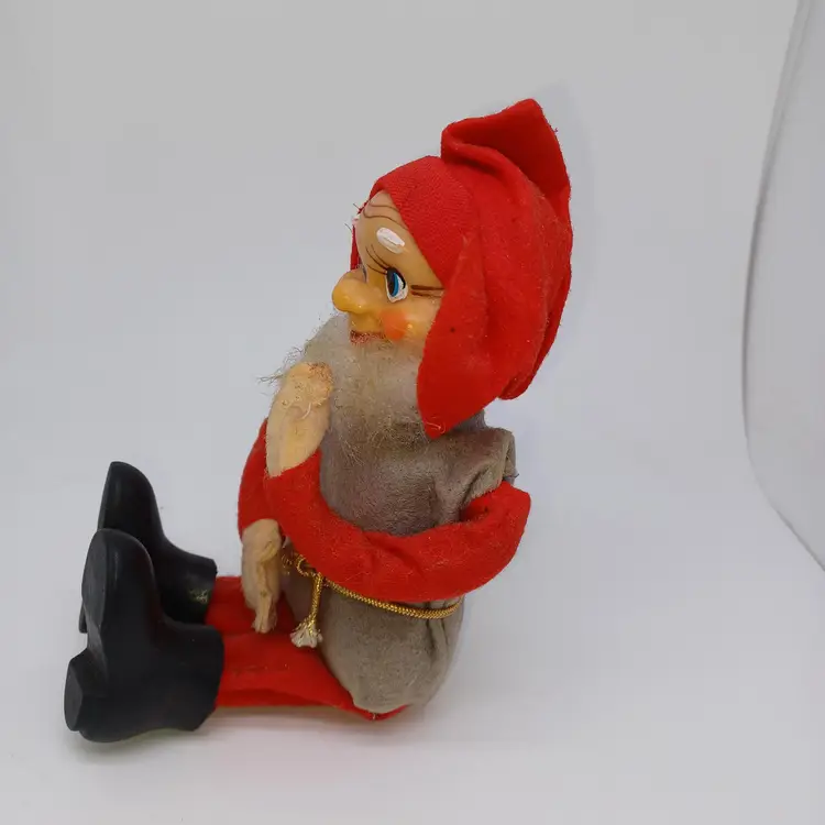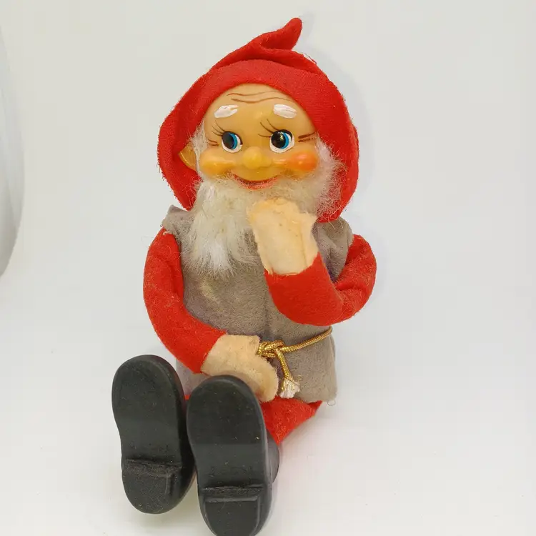 Vintage Japan Mcm Christmas Elf Rubber Felt Doll Holiday Decor